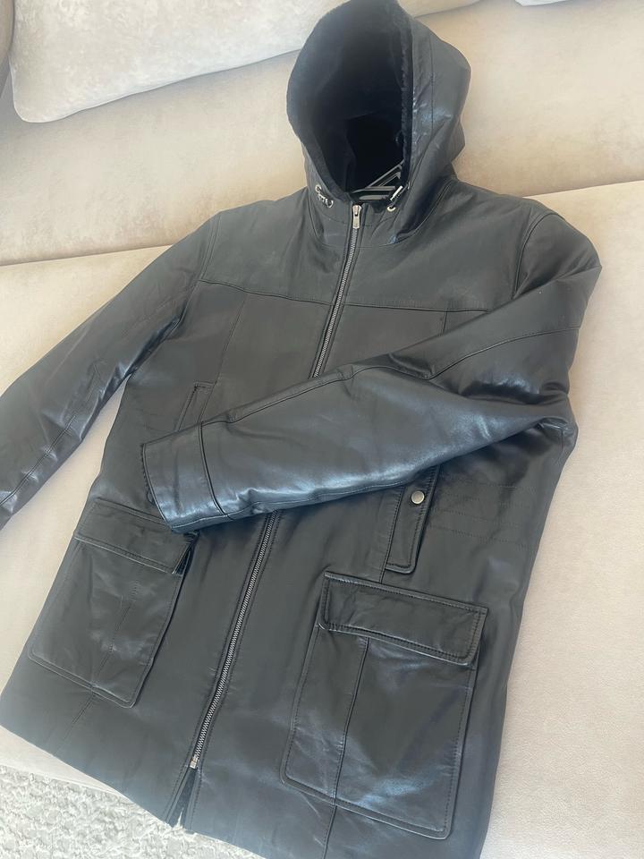 Продам мужскую дублёнку из натуральной кожи с капюшоном. Состояние хорошее, носилась аккуратно. Тёплая и удобная, отлично подходит на зиму. Бренд - estimo Размер: 50-52 Цвет: чёрный Артикул: 557045