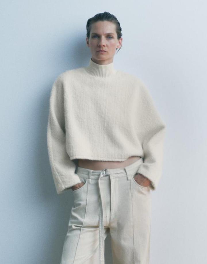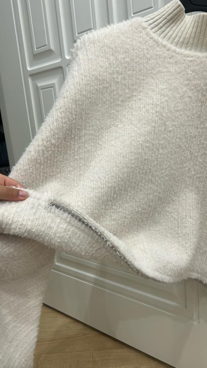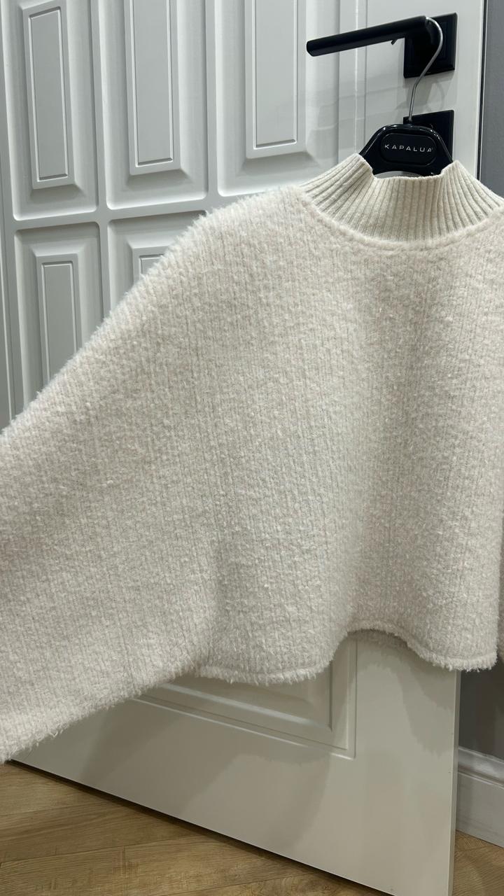 Свитер из букле с деталями в рубчик .В цвете экрю . В идеальном состоянии, носила всего пару раз . Артикул: 557074