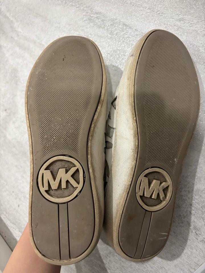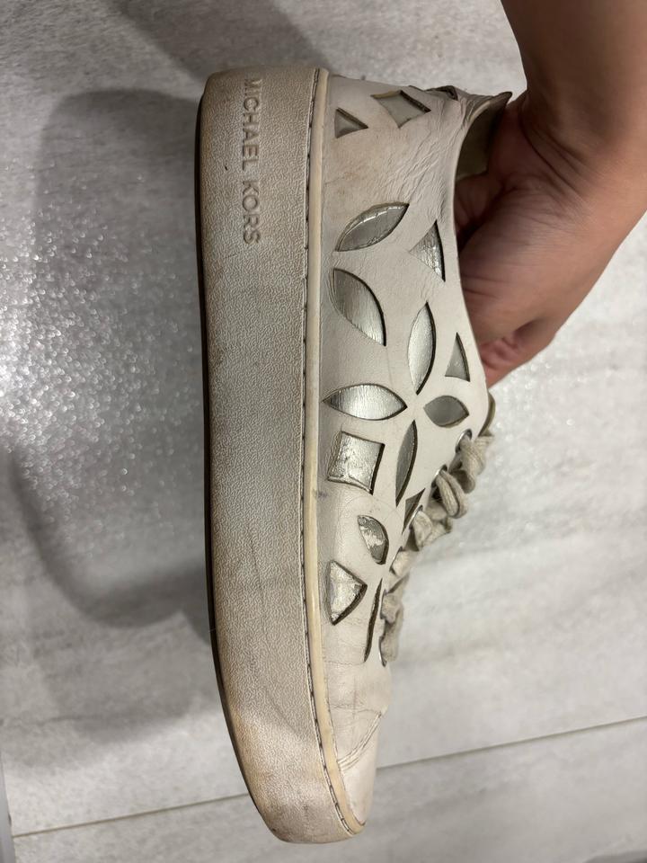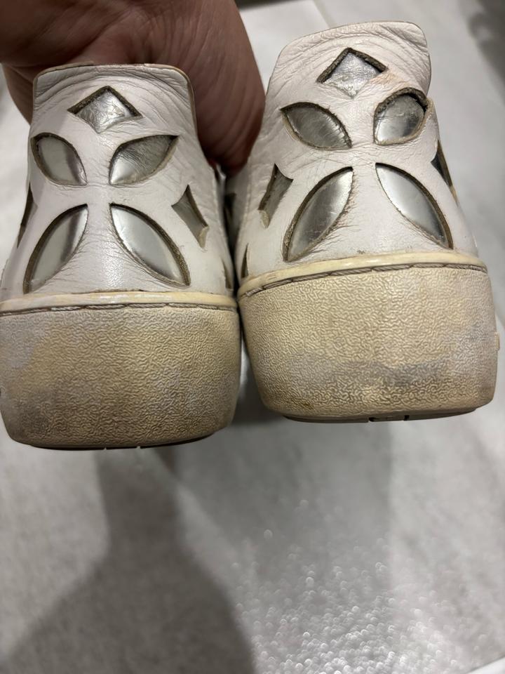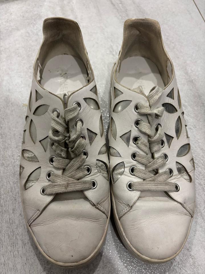 Кеды кожаные натуралка белые с вставками серого цвета в нежном стиле 37 размер Артикул: 557110