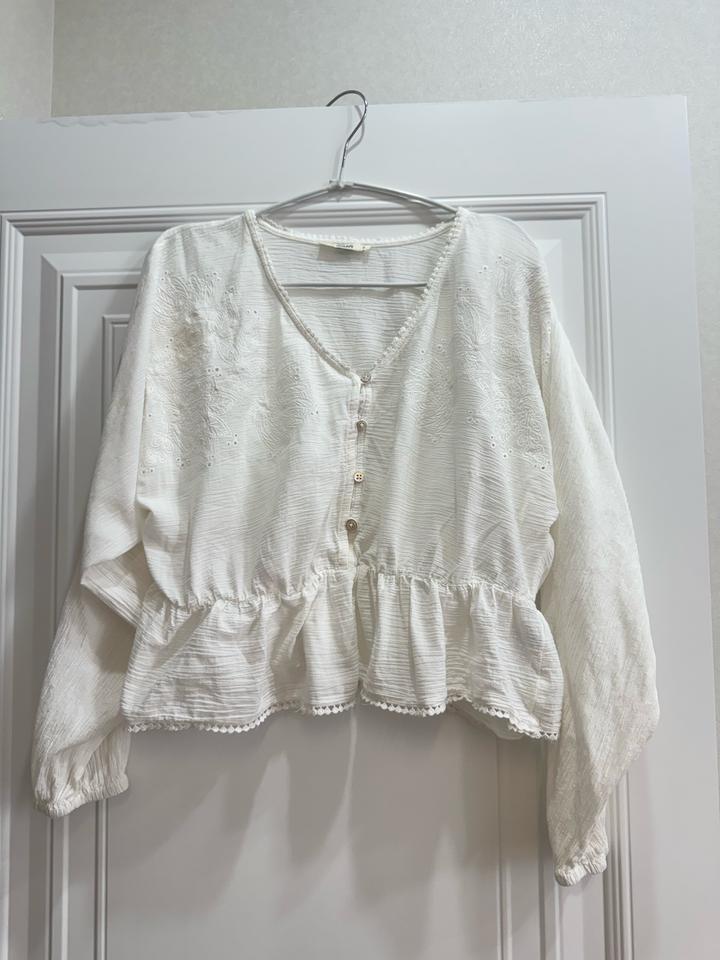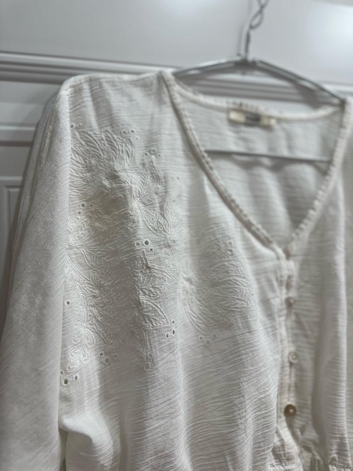 Блузка белая 🤍 Лёгкая, с вышивкой и красивыми деталями Очень нежно смотрится Свободный крой, комфортная в носке Идеально на лето Размер M Артикул: 557120