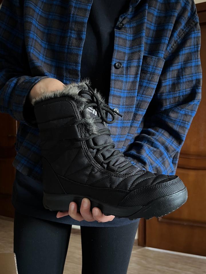 Зимние ботинки Columbia, не промокают, тёплые и стильные ботинки. Мех идет в зоне щиколотке, а дальше утепление. Покупала в Китае по скидке в Columbia (есть чеки) за 44424 вместо 79128 тенге Артикул: 557131