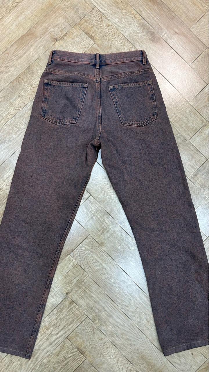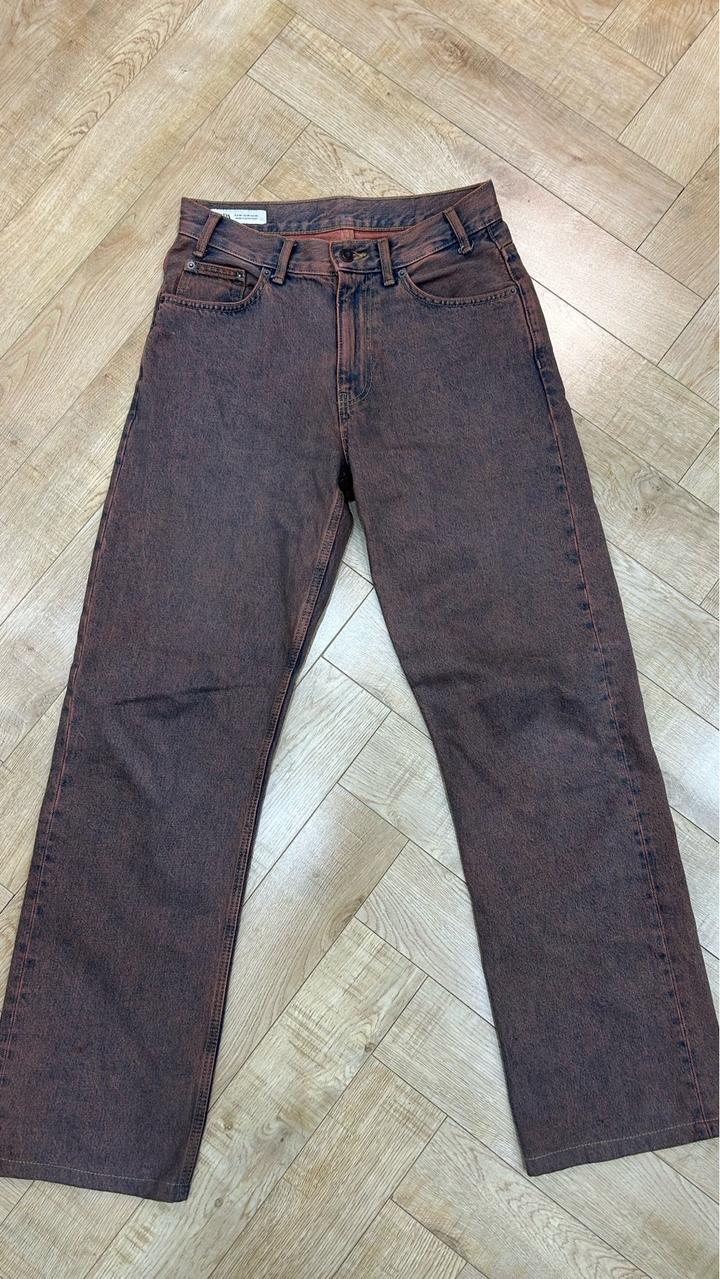 широкие джинсы с эффектом «кислотной стирки» (acid wash) в коричнево-красных или бордовых тонах. В хорошем состоянии . Отличное качество Артикул: 557157