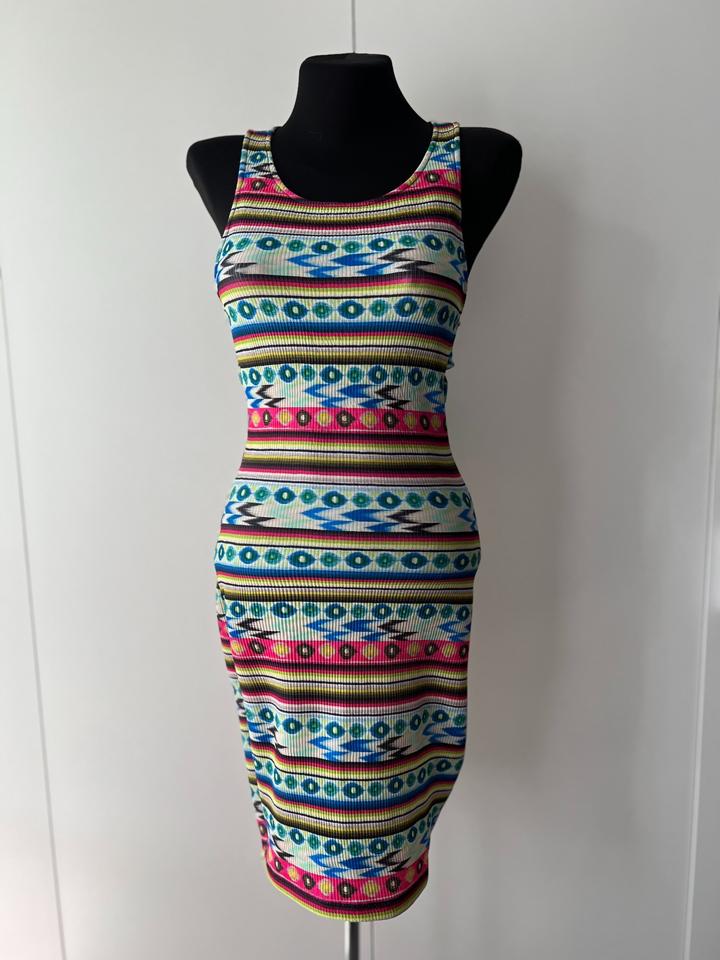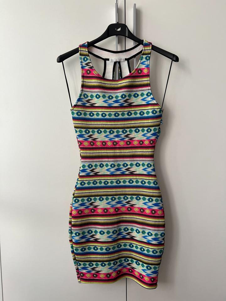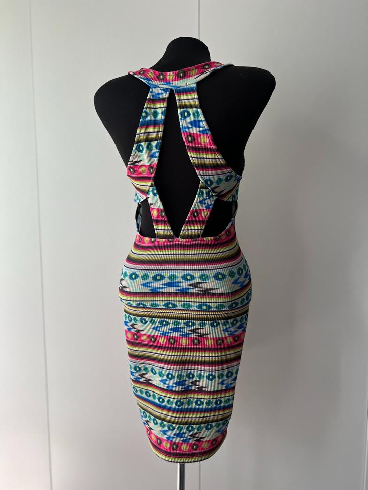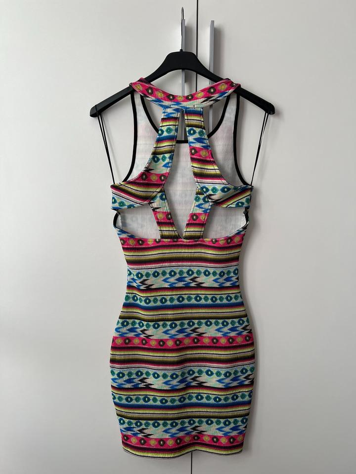 Новое коктейльное платье, этикетку сняла. Платье с ярким принтом и фантазийными вырезами на спинке, длина выше колена. Отлично для тусовок и отдыха на море. Размер xs/s на стройную девушку. Этикетку сняла, но не носила. Теперь после родов не влезаю. Лежит без надобности Артикул: 557203