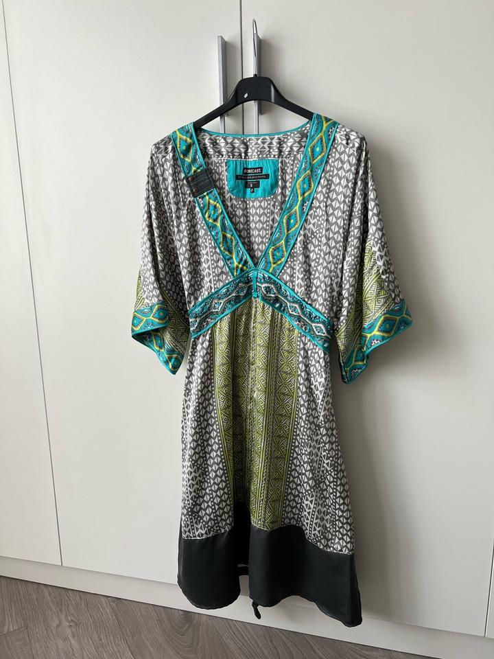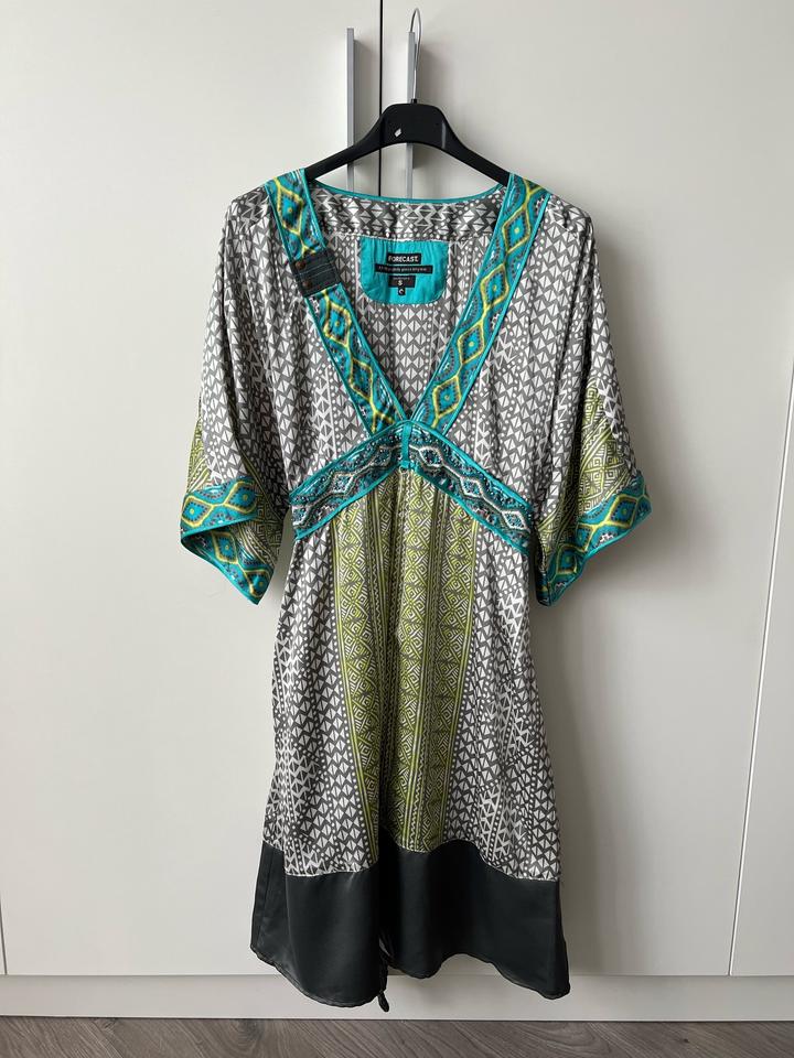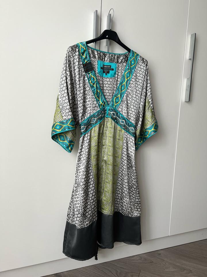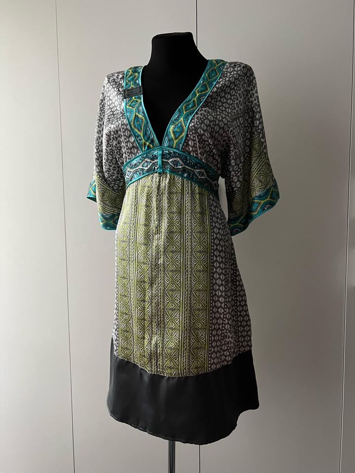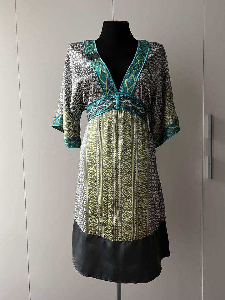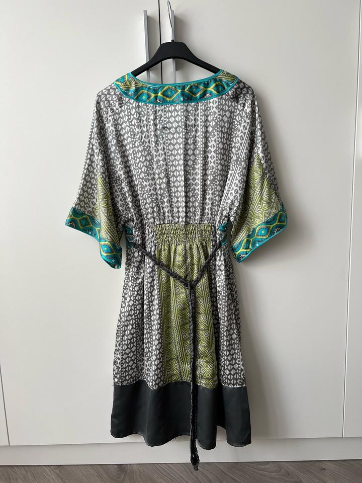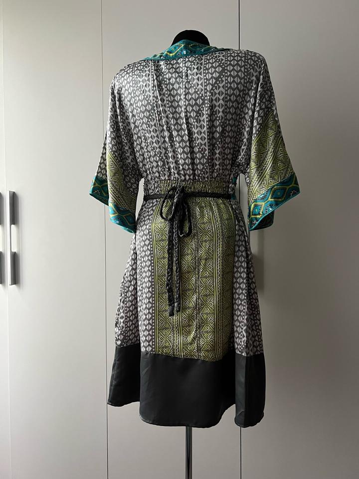 Новое красивое платье кимоно. Этикетку сняла, но так и не носила, провисело в шкафу. Размер 42, длина до колен, рукав до локтя. Очень красивое и подчеркивает фигуру. После родов не влезаю, лежит без надобности Артикул: 557215