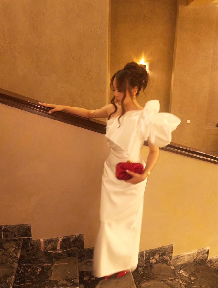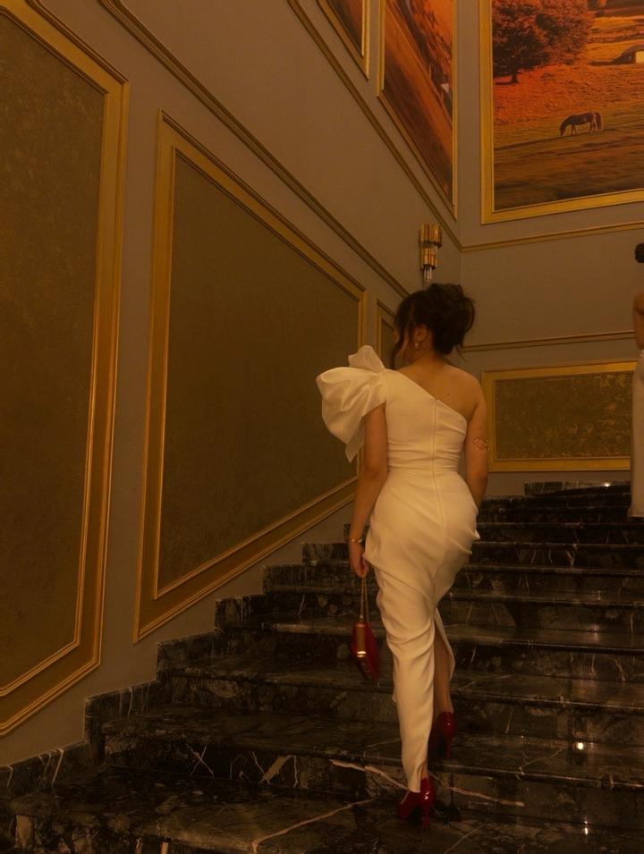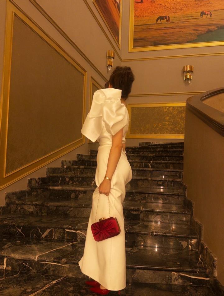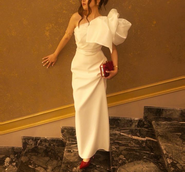 Белое платье с бантом на одно плечо. Из качественного, плотного атласа (верхняя часть), нижняя часть тоже из качественного матового материала. Прилегает и хорошо подчеркивает фигуру, длина макси. Размер 42-S. Покупала для выпусконого 2025, в отличном состоянии, новое. Артикул: 557347