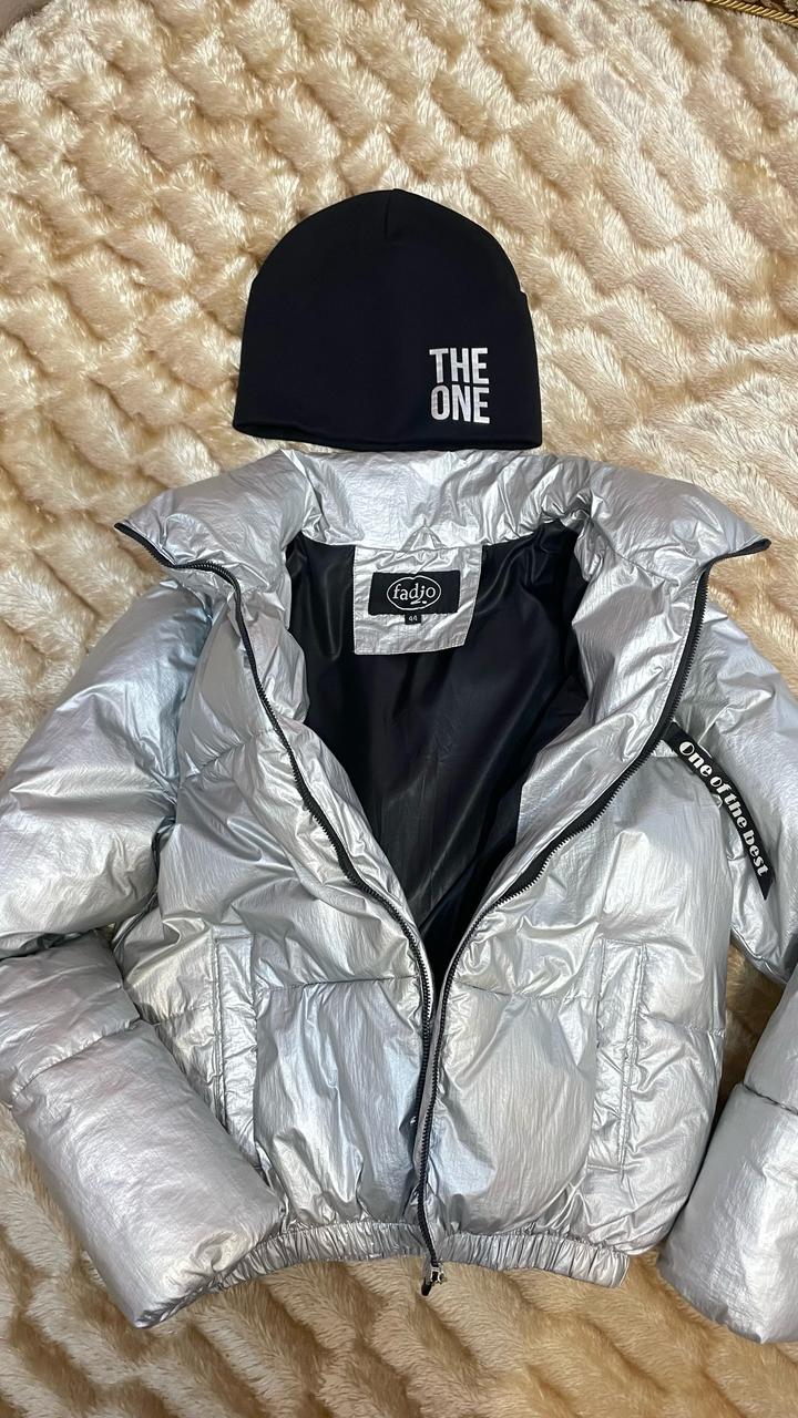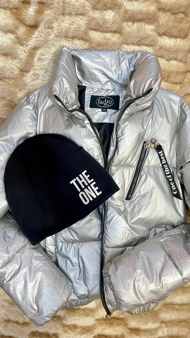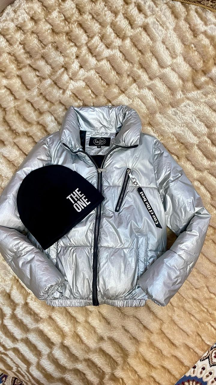 Куртка серебристая, шапка в подарокS/M