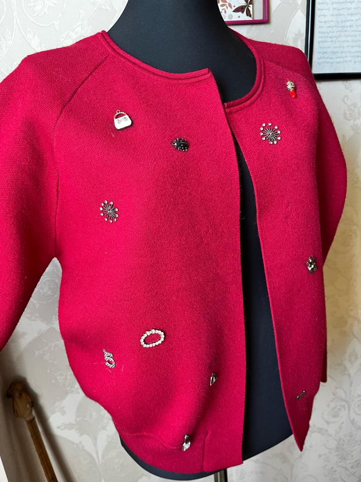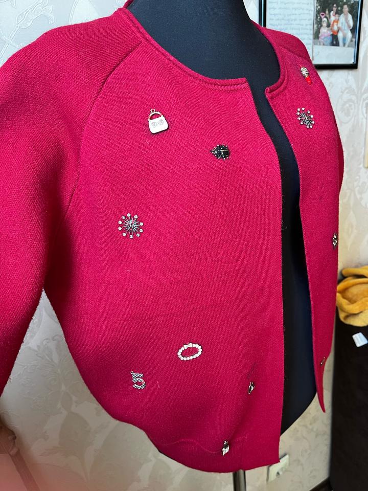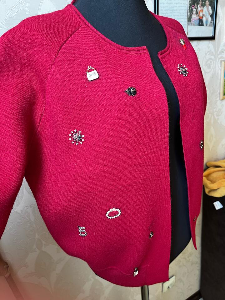 Малиновая кофта с брошами, в очень хорошем качестве, размер стандарт подойдет- xs,s,m Артикул: 557442