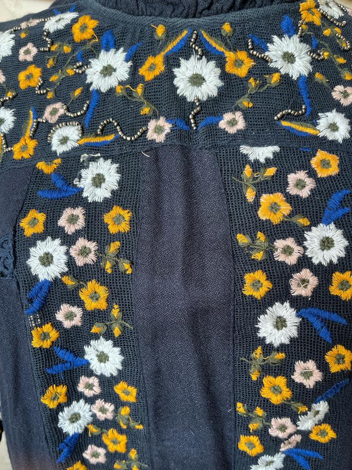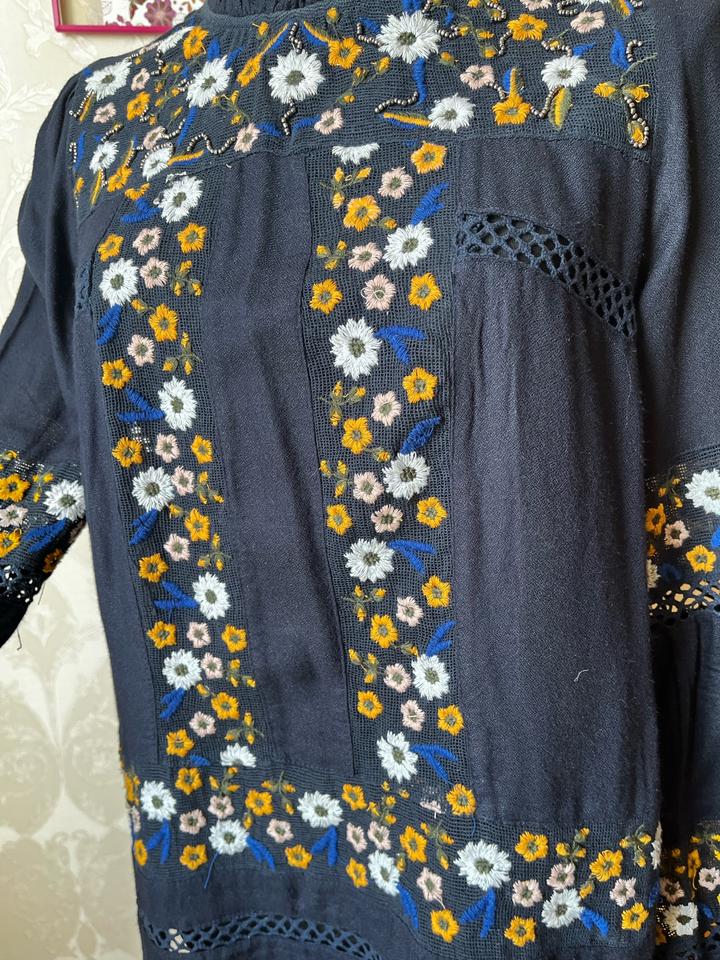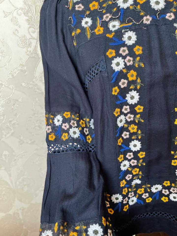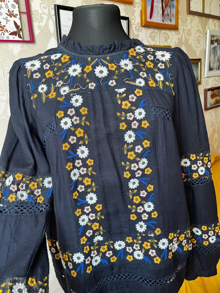Очень красивая темно-синяя рубашка nafnaf с цветочной вышивкой Артикул: 557461
