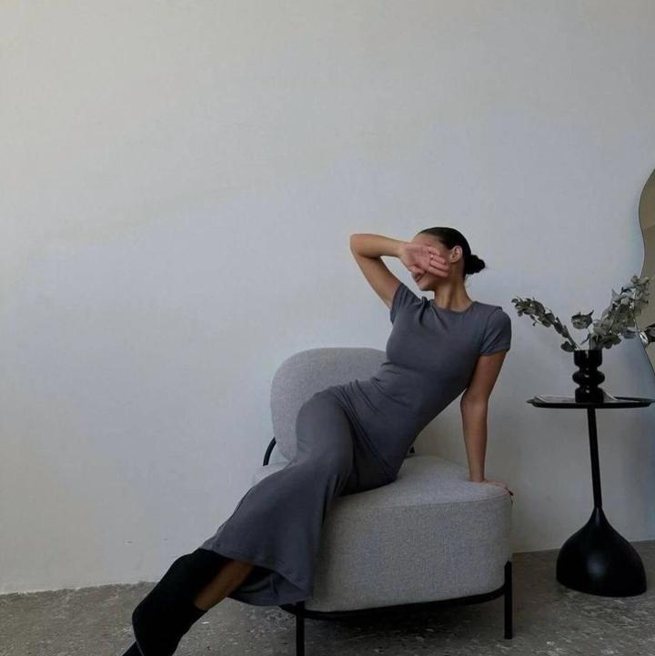Повседневное серое платьеM