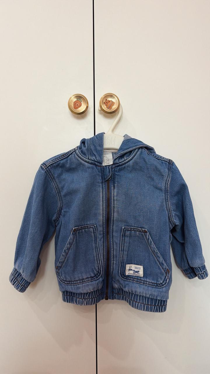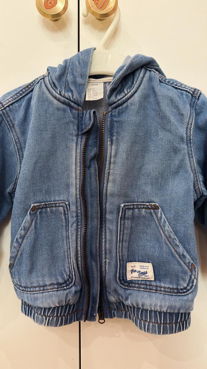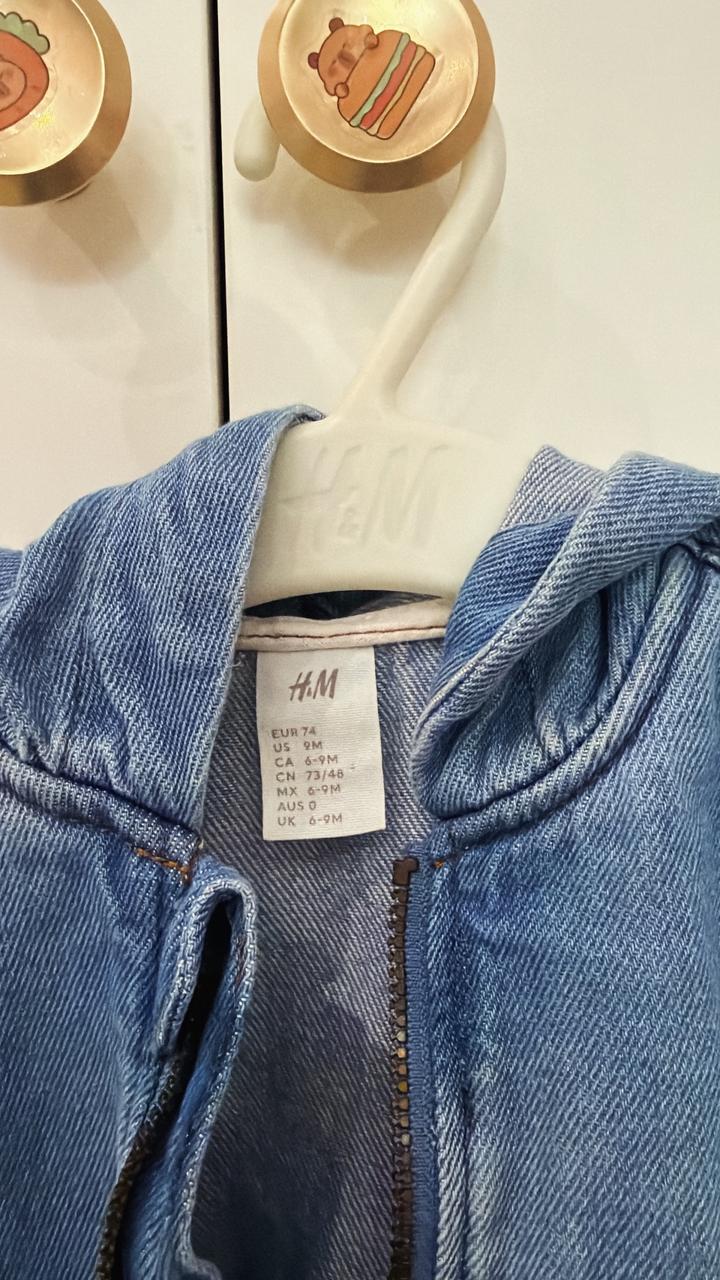 Детская джинсовая куртка с капюшоном H&M на 6-9 месяцев в идеальном состоянии. Артикул: 557483