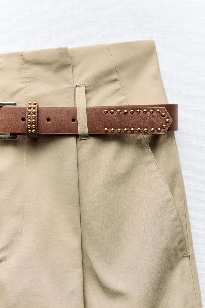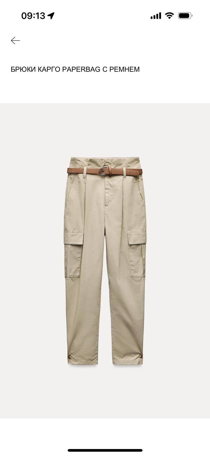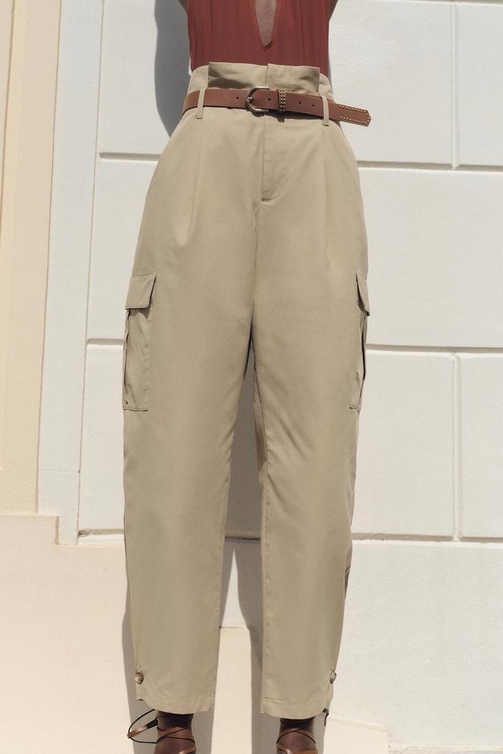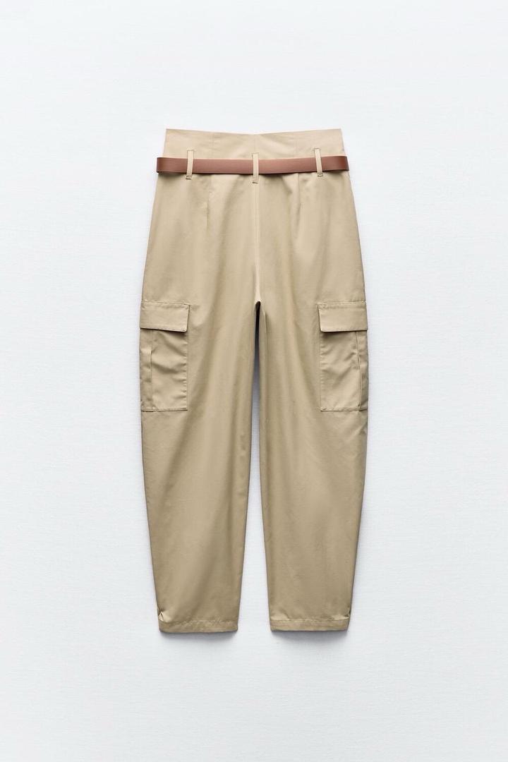Брюки карго с ремнём в бежевом оттенке от ZaraS