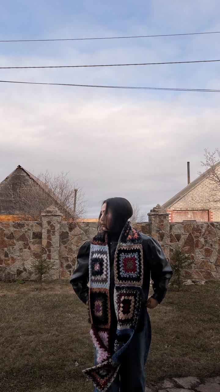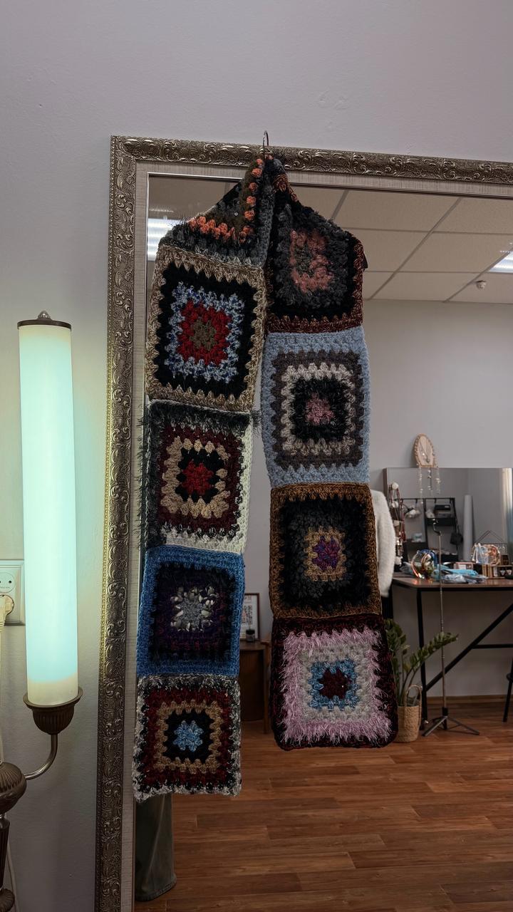 Шарф связанный вручную в технике Бабушкин квадрат, из итальянской пряжи. Студия пряжи и вязания @zhanar_urazalinova. Артикул: 557512