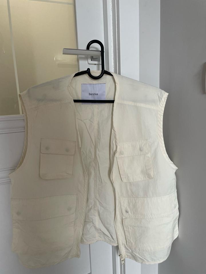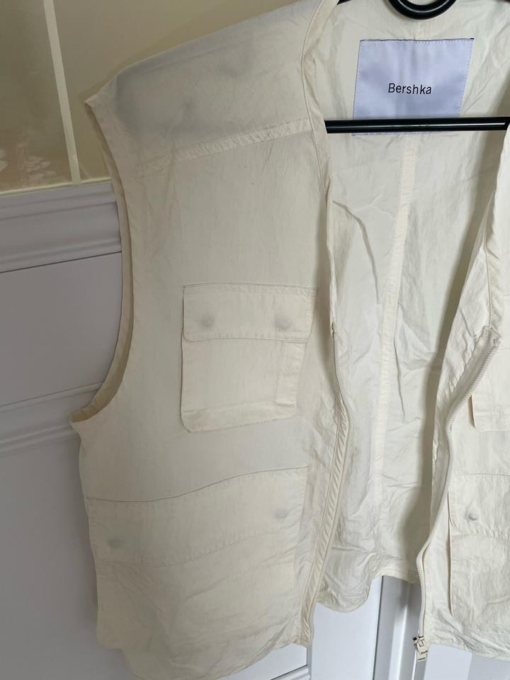 Трендовая жилетка от Bershka в стиле utility ,cargo. лёгкая, с гладкой слегка скользящей тканью что-то между нейлоном и полиэстером (ветровочный материал) Артикул: 557701