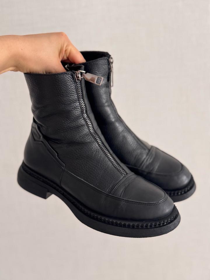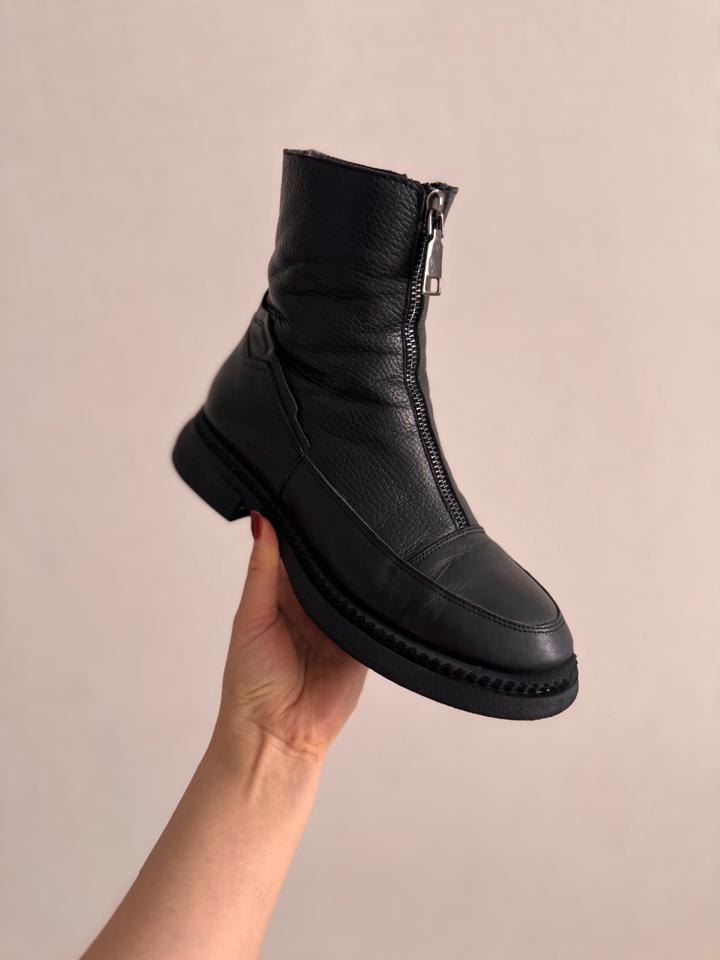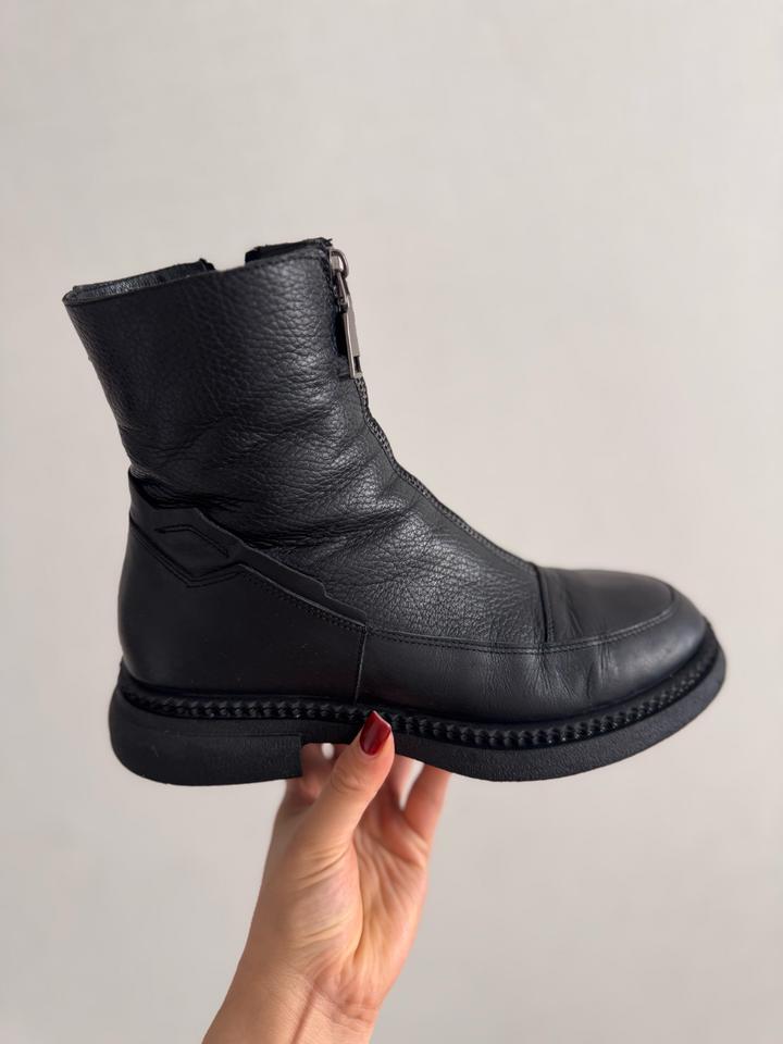 черные зимние ботинки из натуральных материалов кожа и мех. Артикул: 557776
