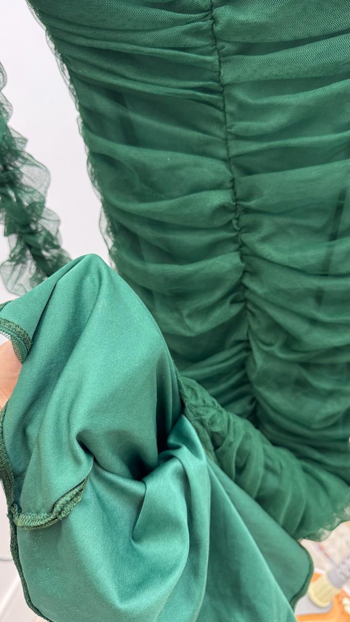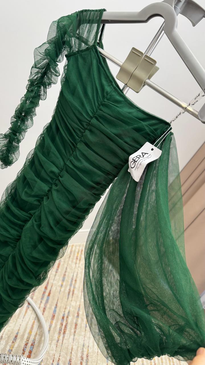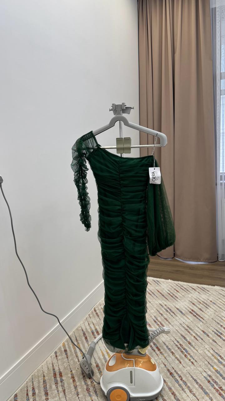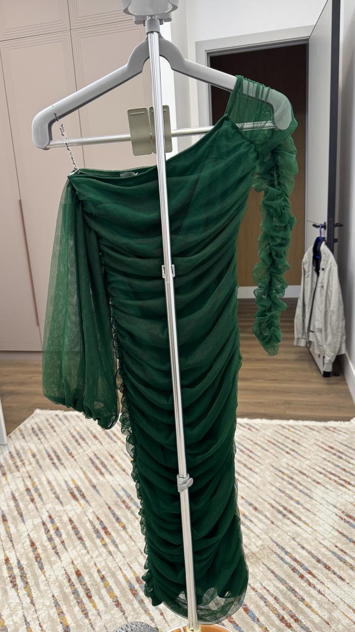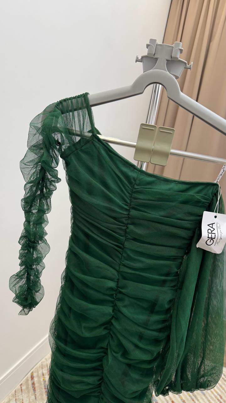 Платье зеленое на одно плечо. Очень нежное. Сетка и подклад. Новые. Размер 40-42 . Артикул: 557800