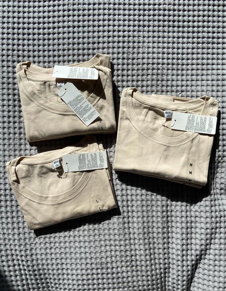 Женские футболки базовые Uniqlo Базовые футболки бежевом цвете, оригинал, выкупали в Корее Артикул: 557841