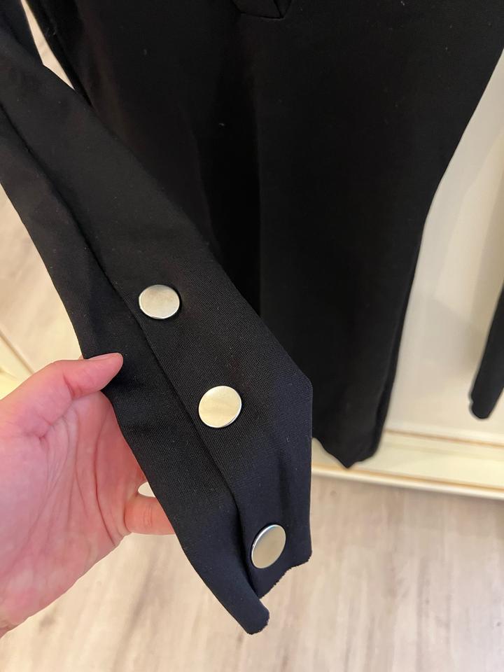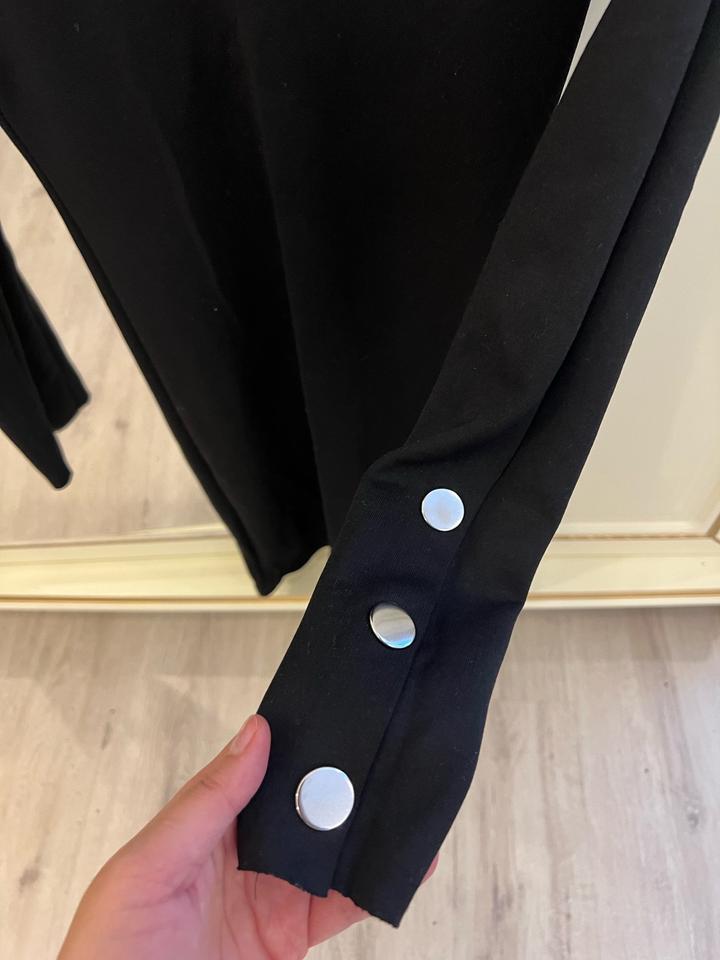 Отлично состояние, пару раз надела, размер S, длина выше колен Немного открыта грудь, черное платье плотной ткани идеально сидит на фигуре Артикул: 557880
