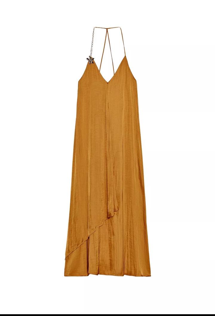 Атласное платье миди с фурнитурой, оттенок оранжевого, размер написано S, но подойдут на М, рост выше 165см, новая Артикул: 557918