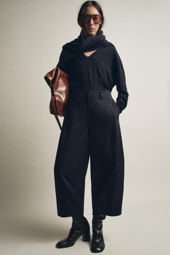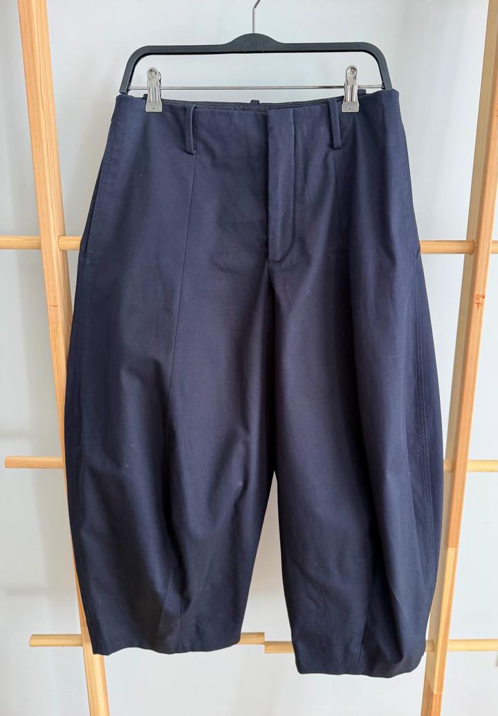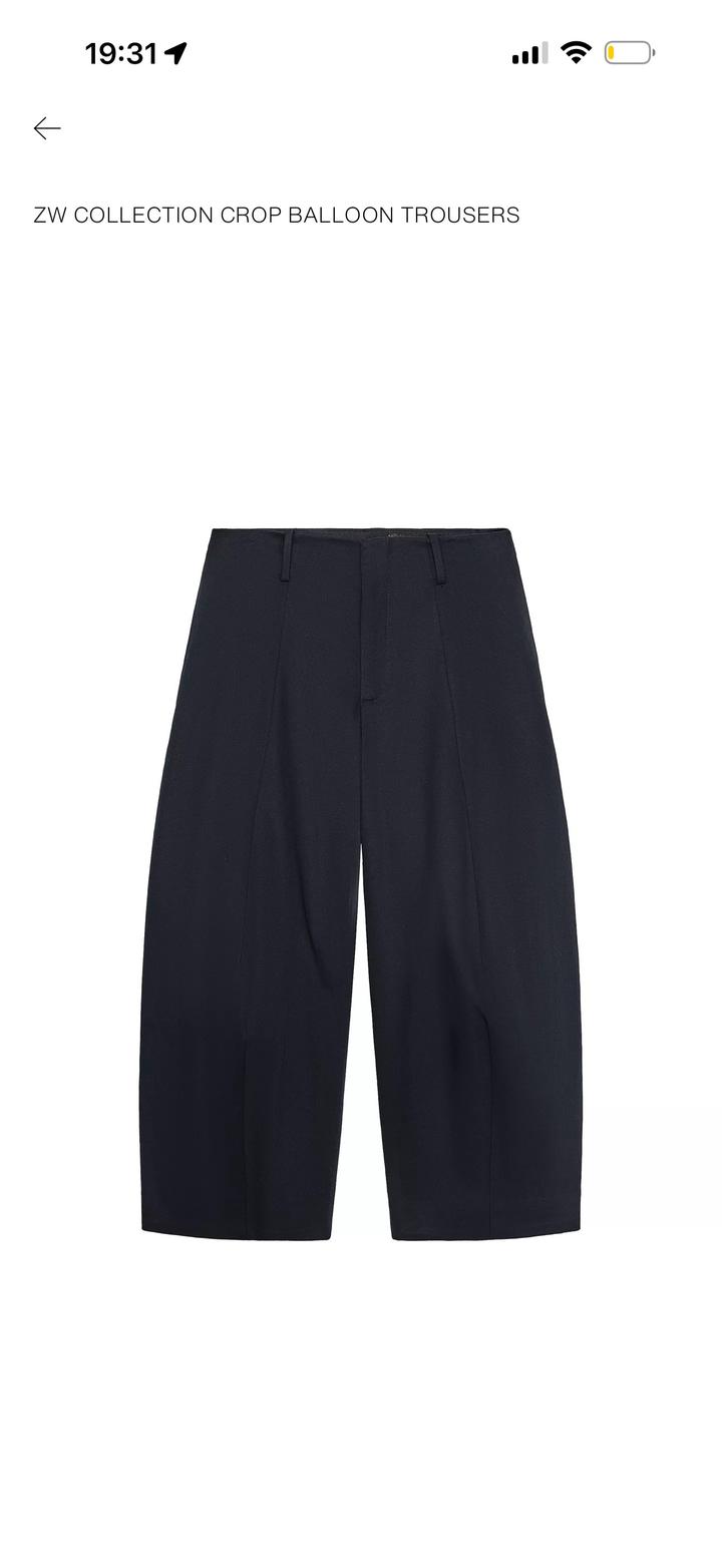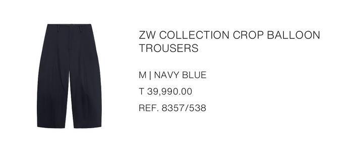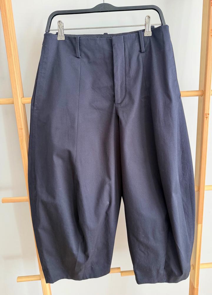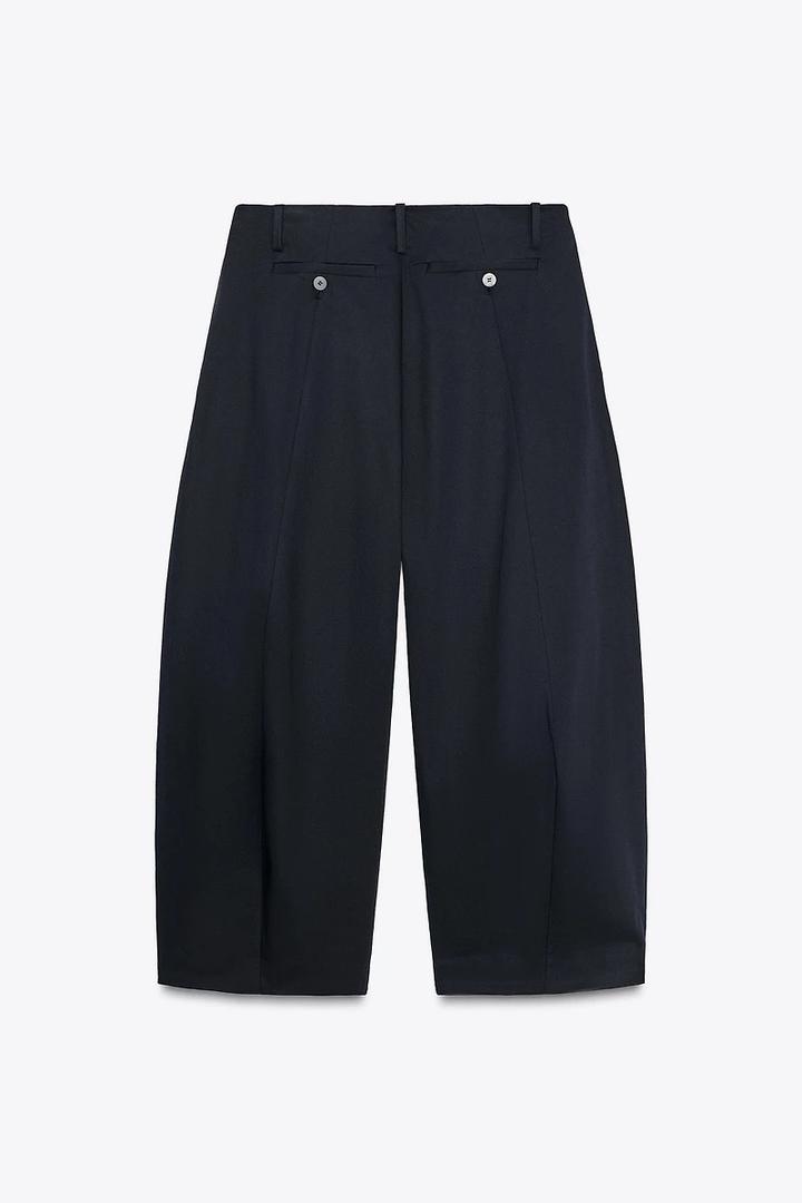 Темно синие укороченные, широкие брюки Zara, модель: CROP BALLOON TROUSERS Артикул: 558006
