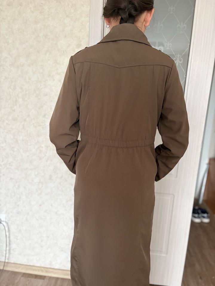 Элегантный удлинённый плащ в шоколадном оттенке 🤎 Классическая модель с аккуратным кроем и затяжкой на талии, смотрится очень стильно и дорого. Удобный, практичный и тёплый вариант на прохладную погоду. 📏 Размер: L ✨ Состояние отличное Артикул: 558050