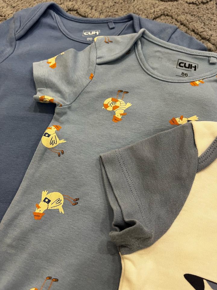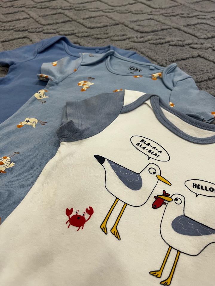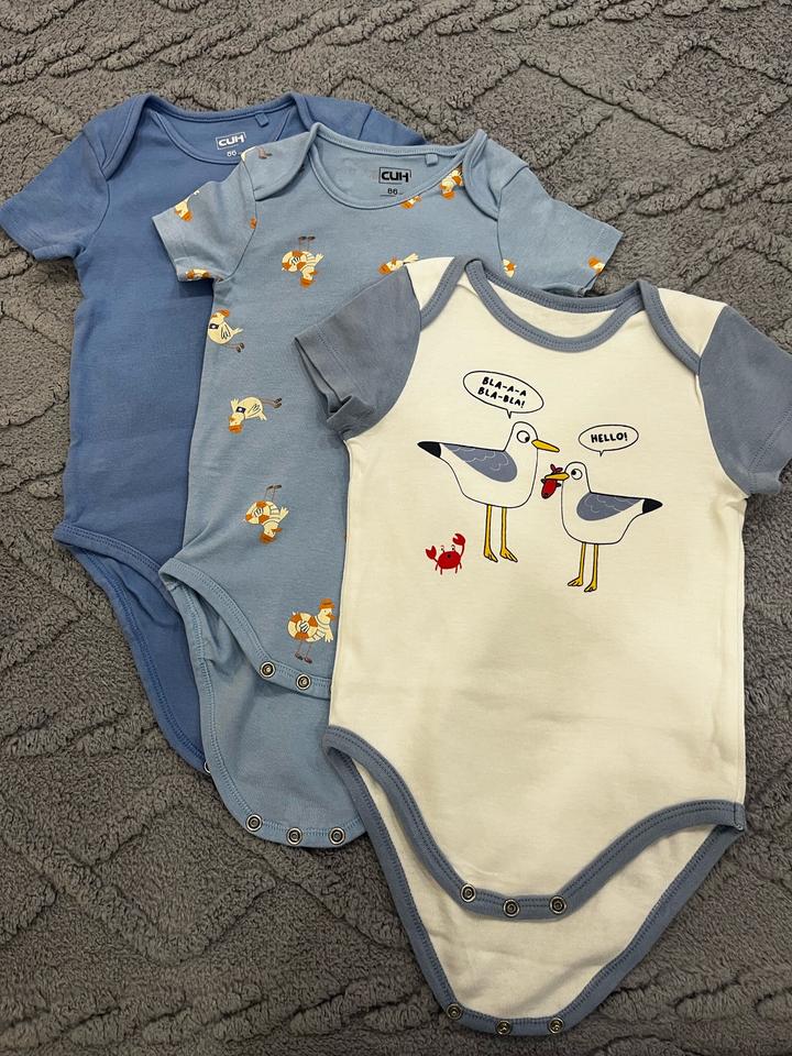 Комплект боди, подойдет на рост 80-86. На одном два маленьких пятнышка, еле заметных. Носили пару раз Артикул: 558071