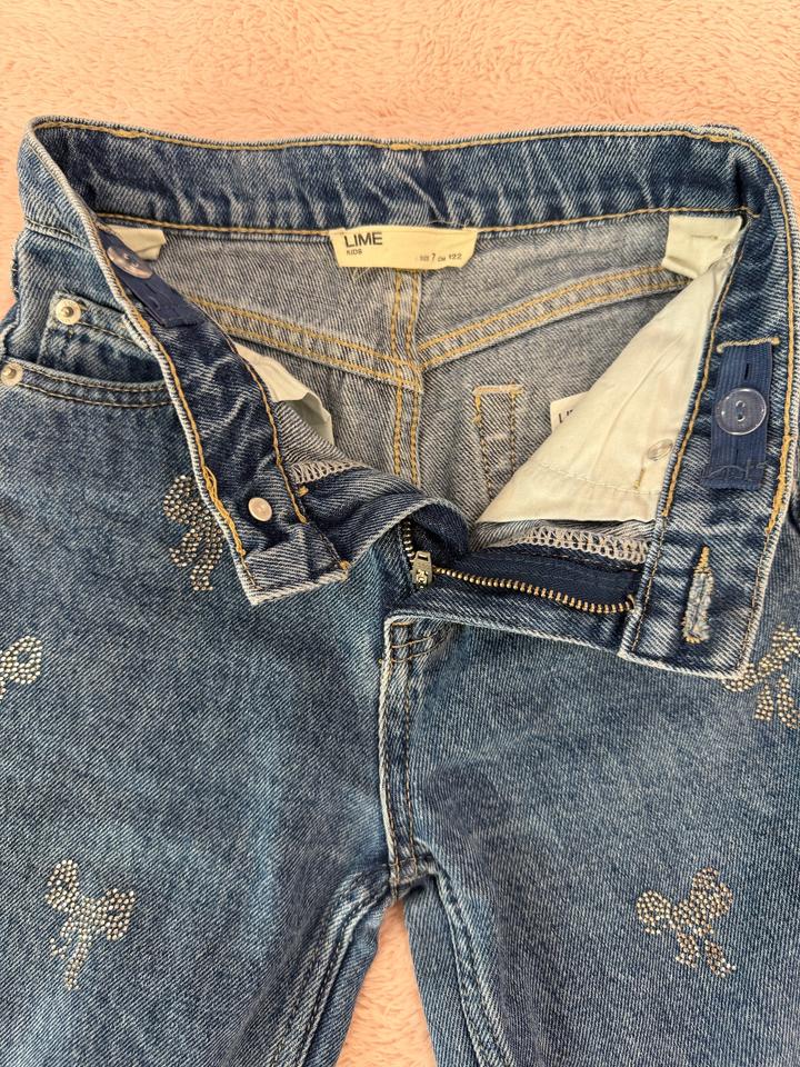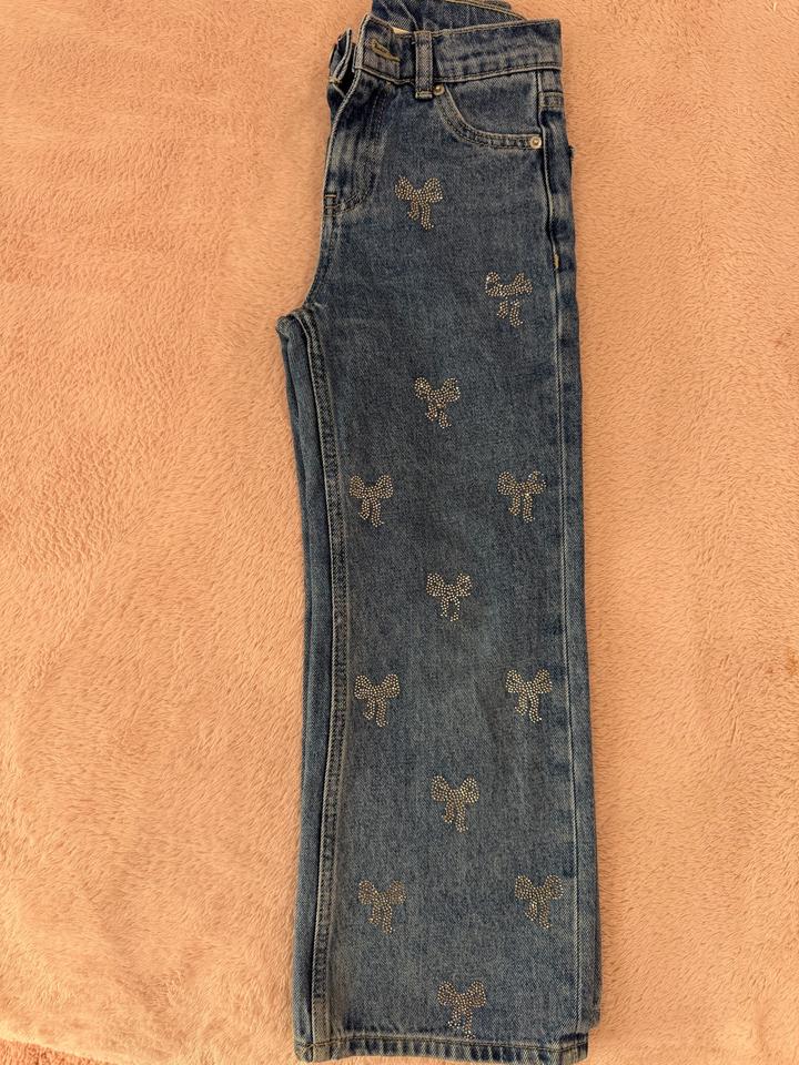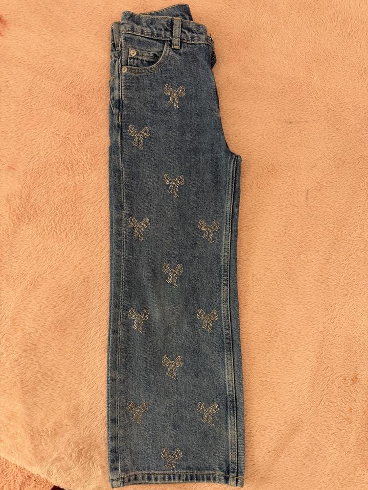 Джинсы синие со стразами на девочку. Размер 7 лет В хорошем состоянии, после стирки нет нескольких страз, но в глаза не бросается Артикул: 558159