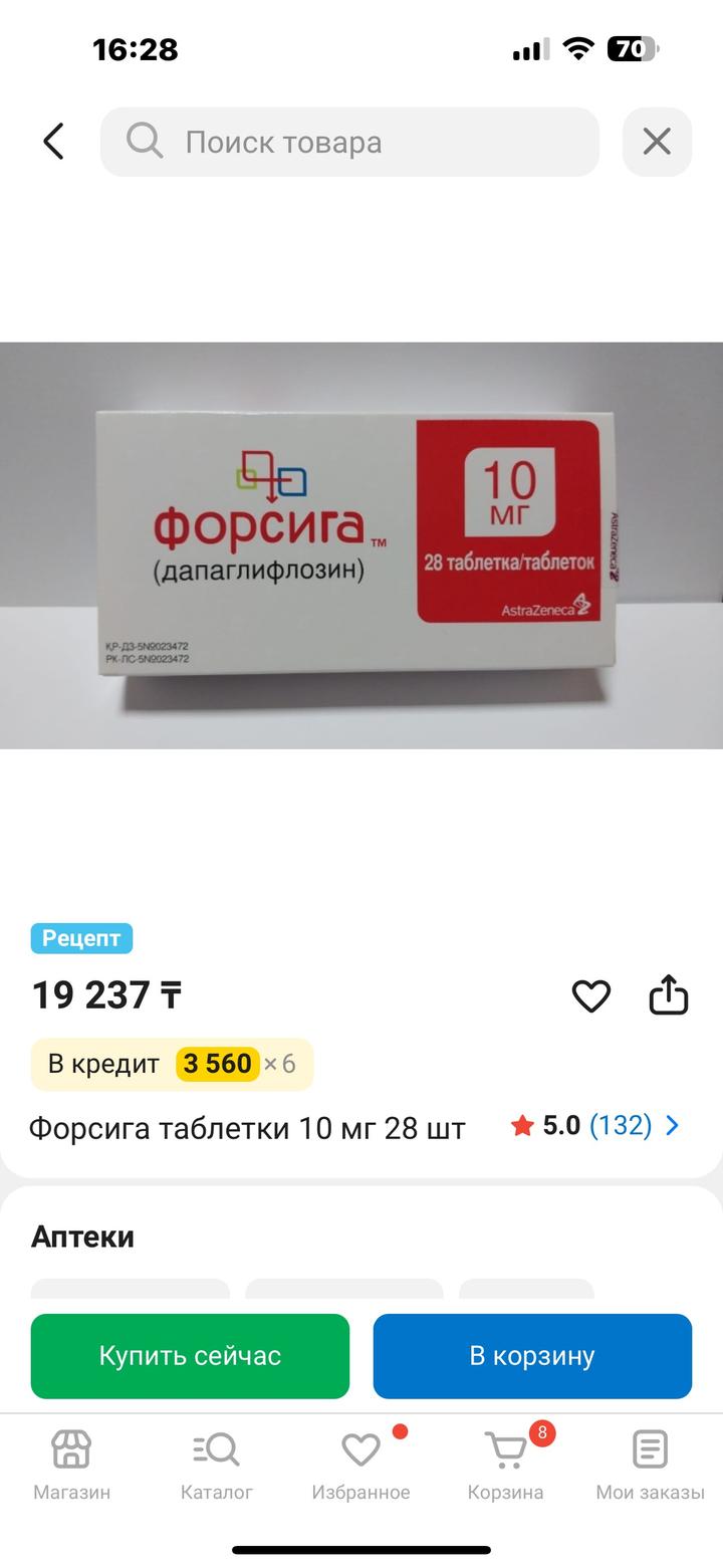 Препарат для лечения диабета. Привезен был из России. Назначили долгий курс, но потом поменяли на другую дозировку. Коробка осталась не вскрытая. Срок хороший. Артикул: 558240