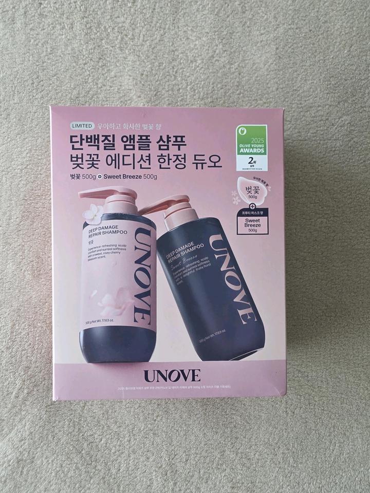 Шампунь UNOVE Deep Damage Repair (набор 2×500 мл) — ЛИМИТИРОВАННАЯ ВЕРСИЯ Оригинал из Кореи Продаю крутой корейский набор шампуней UNOVE Deep Damage Repair — ЛИМИТИРОВАННАЯ ВЕРСИЯ с ароматом цветущей вишни В наборе: • Шампунь Cherry Blossom — 500 мл • Шампунь Sweet Breeze — 500 мл Почему он классный: — Восстанавливает поврежденные волосы — Делает волосы мягкими и гладкими — Придает блеск и ухоженный вид — Очень приятный нежный аромат — Подходит для сухих и окрашенных волос Артикул: 558289