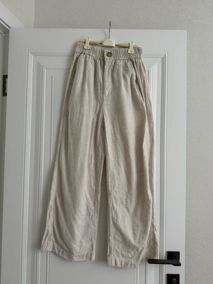 Льняные брюки Stradivarius Размер: S (на бирке XS, но идут на S) Лёгкие, дышащие, идеальны на лето ☀️ Свободная посадка, комфортная резинка Артикул: 558296