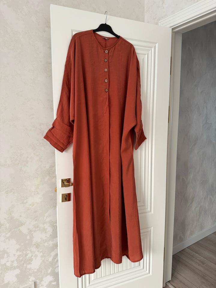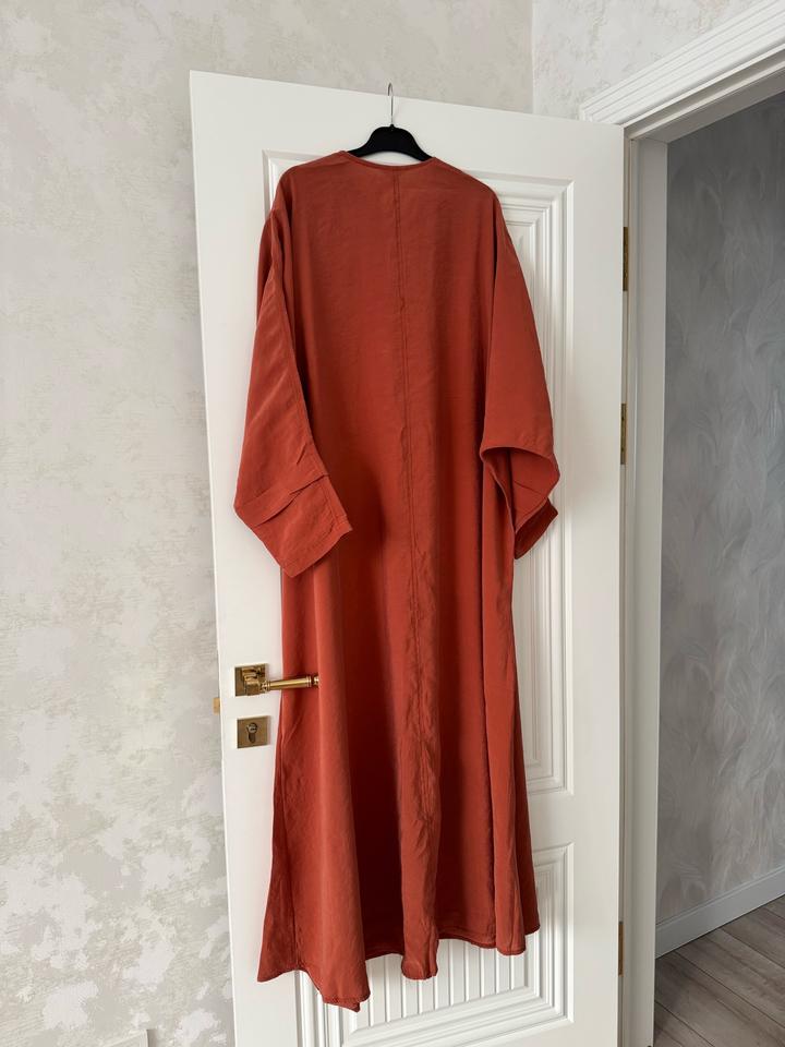 Широкая абайка из вареной ткани модал. Очень легкая, невесомая, идеальная ткань на лето и на умру. Можно сочетать с брюками и с юбками. Одевалось всего 2-3 раза. Размер стандарт 36-60, ооочень широкая. Турецкий бренд Neways. Покупала за 35,000тг Артикул: 558359