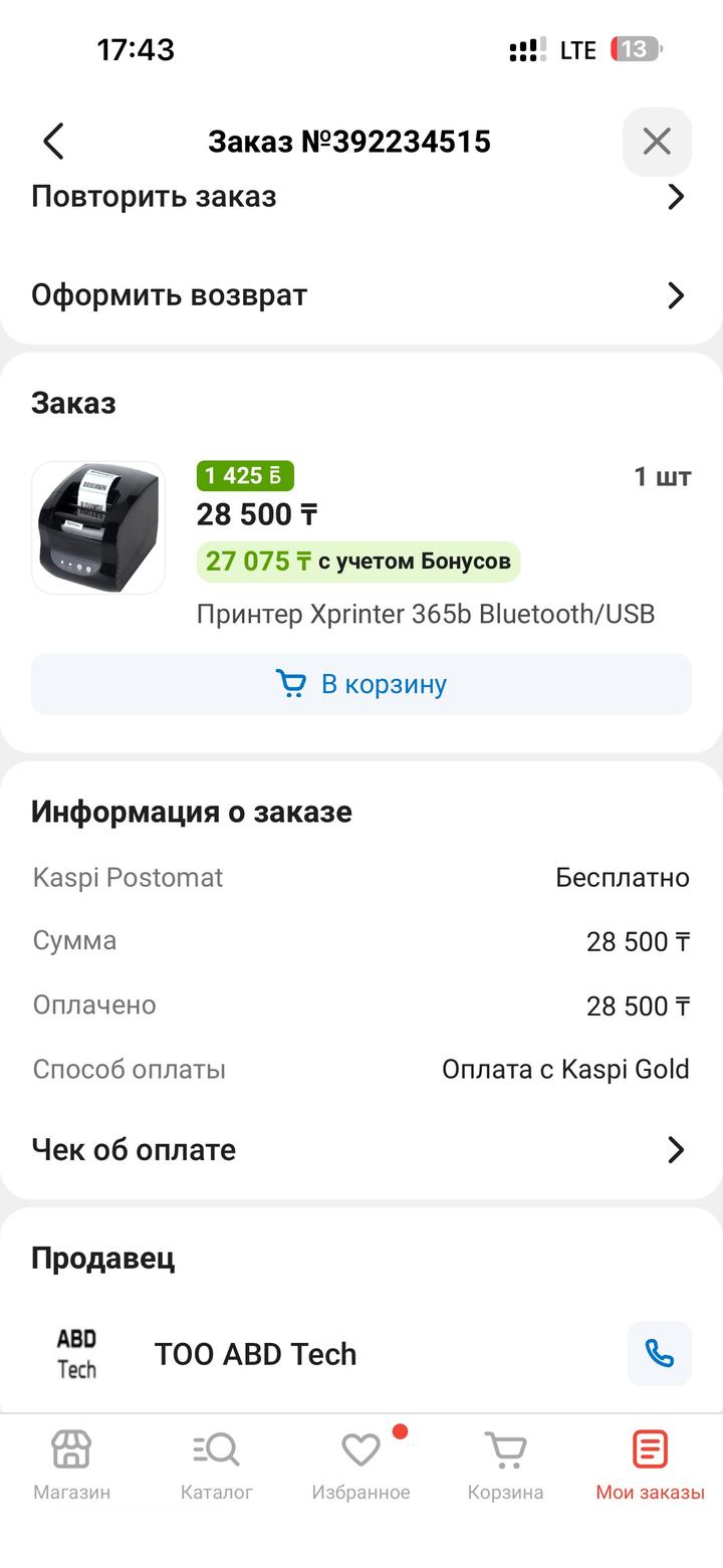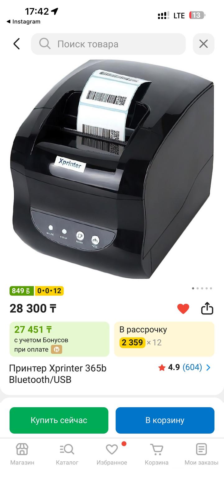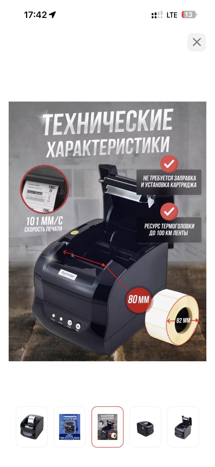 Xprinter 365b Bluetooth/USB В отличном состоянии,без дефектов использовала редко,идеальный размер этикеток для Kaspi магазина Артикул: 558374
