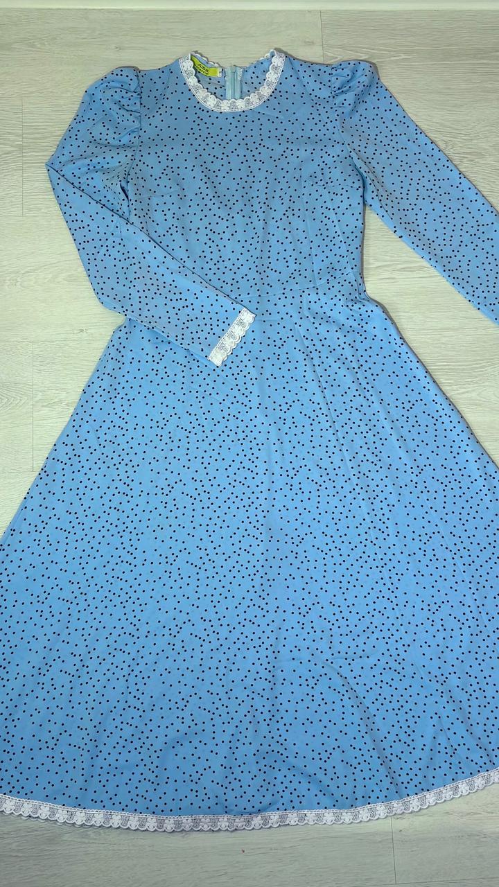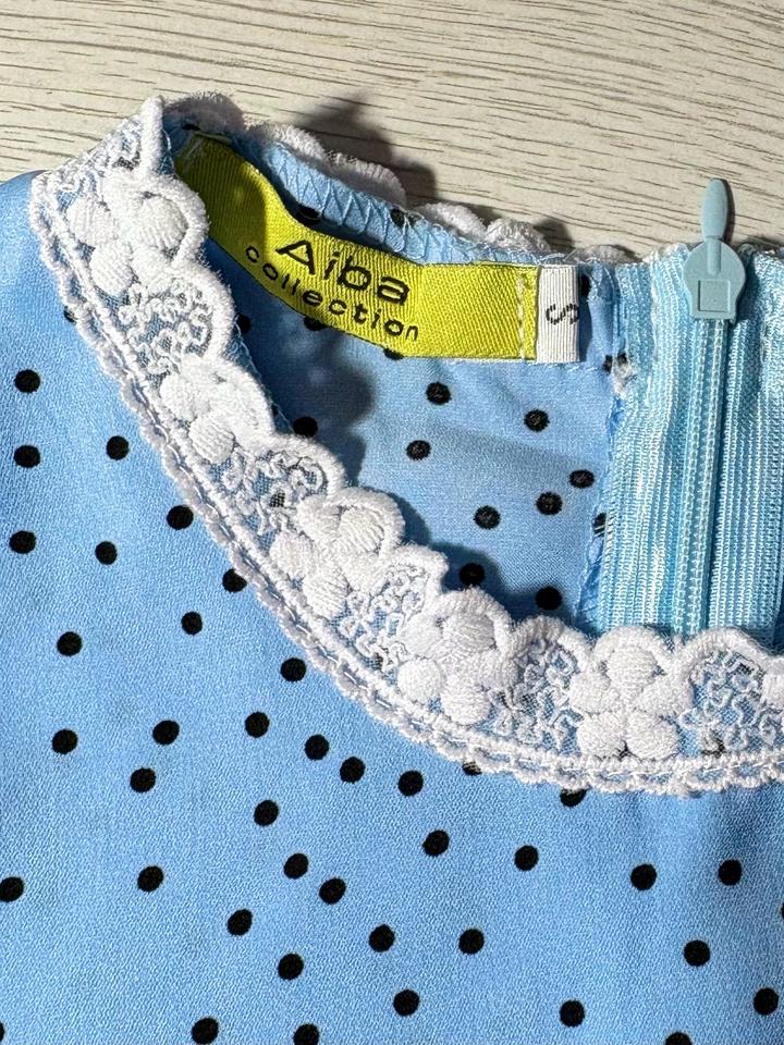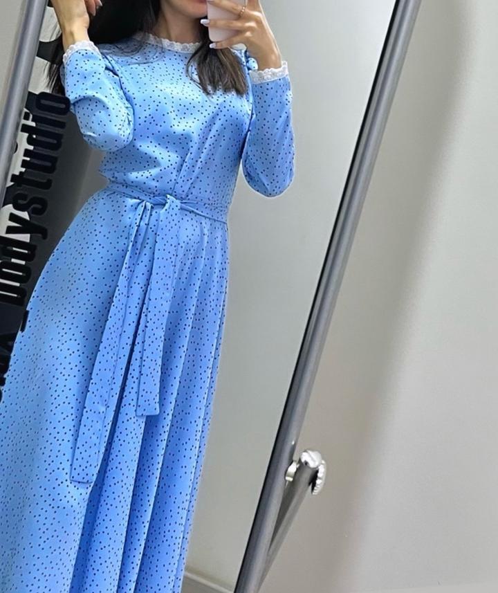 Нежное романтичное платье 💙 Очень красивый голубой цвет в горошек, с кружевной отделкой. Сидит аккуратно и женственно. Размер S, подойдёт и на XS. На рост 157см по щиколотку. В отличном состоянии. Артикул: 558482