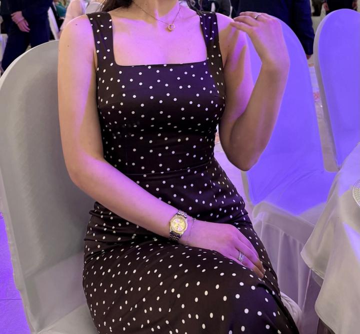 Платье в горошек 🤍 Элегантное платье тёмно-коричневого цвета с белым горошком. Приталенный силуэт красиво подчёркивает фигуру, плотная ткань хорошо держит форму.Надевалось всего один раз, состояние идеальное, без дефектов. Артикул: 558506