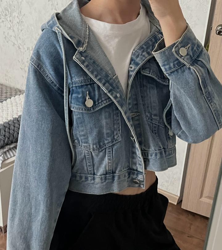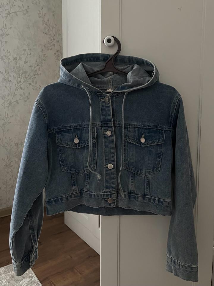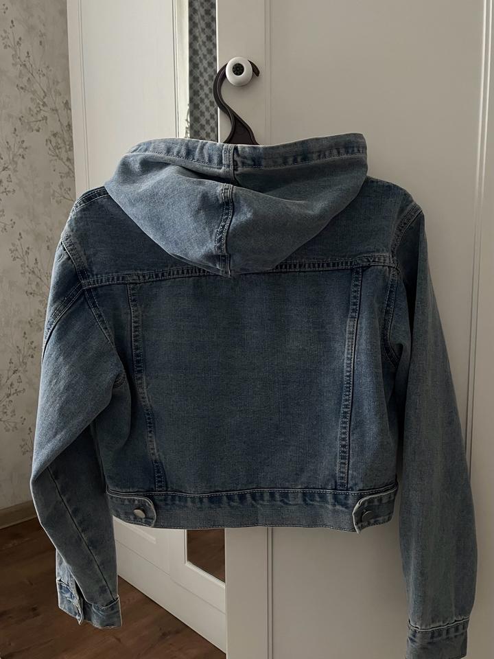 Продаю джинсовку с капюшоном. Цвет голубой, укороченная. Смотрится очень стильно, удобно носится. Подойдёт на размер S–M. Состояние хорошее, почти не носилась. Ко всему подходит — и с джинсами, и с юбкой Артикул: 558538