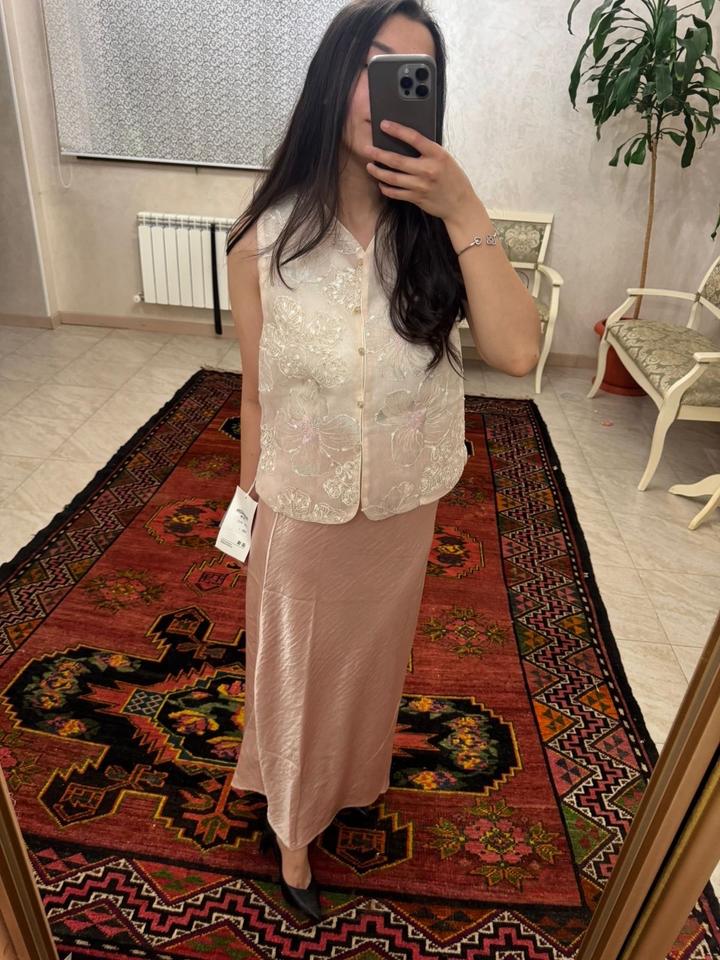 Сатиновая юбочка+нежный,тонкий жилет. Двойка есть в розовом и белом цвете. Состояние:абсолютно новая Артикул: 558706