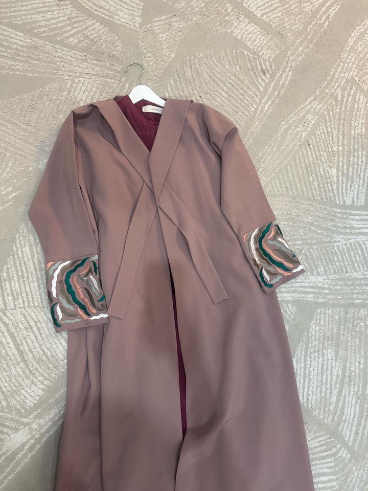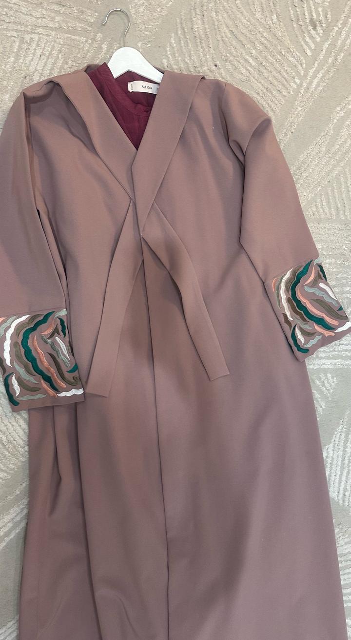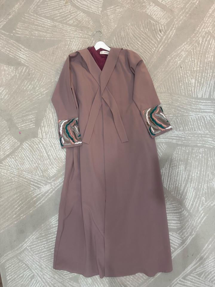 Классическая Абая от ателье, цвет пыльной розы, камера не 100% передает, подходит и на высоких девушек в том числе. Можно одевать с платьями, так и джинсами. Ручная вышивка. Состояние идеальное. Покупалось на мероприятие как чапан)) размер подойдет 46-48. Я ношу 48 и мне отлично. Артикул: 558757