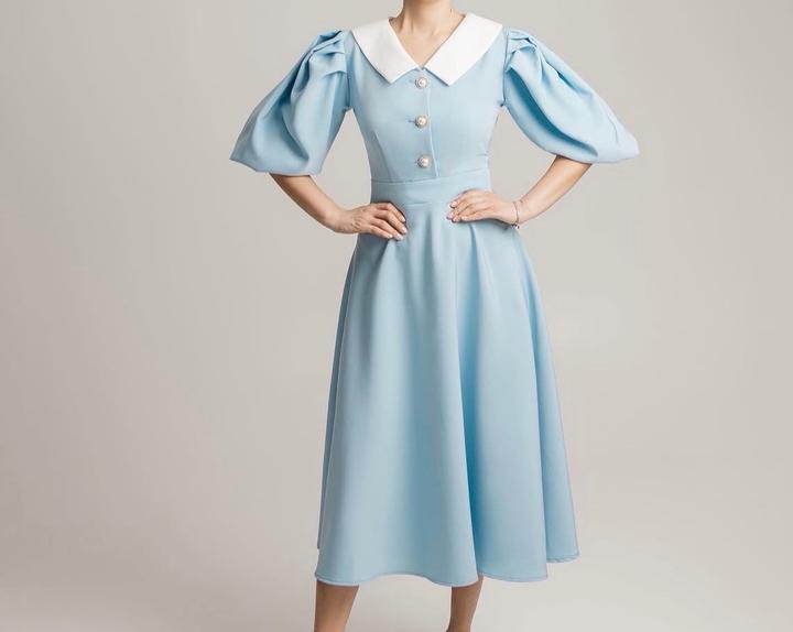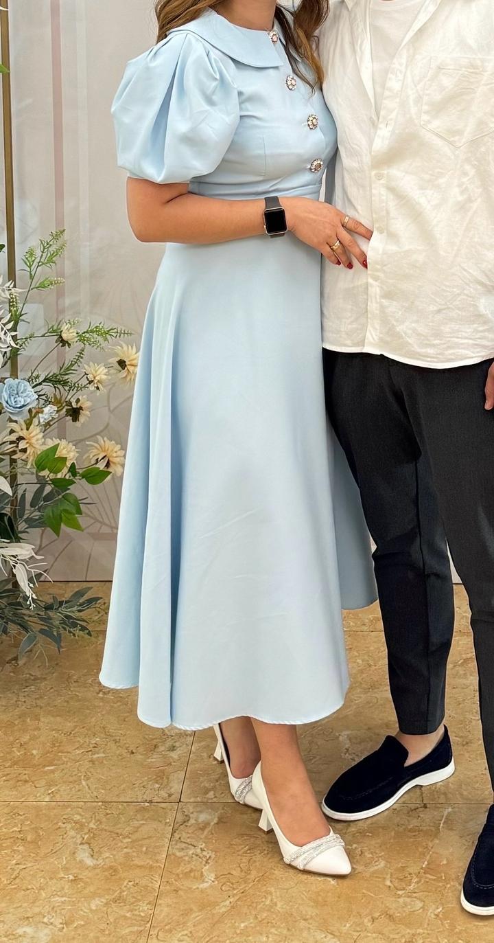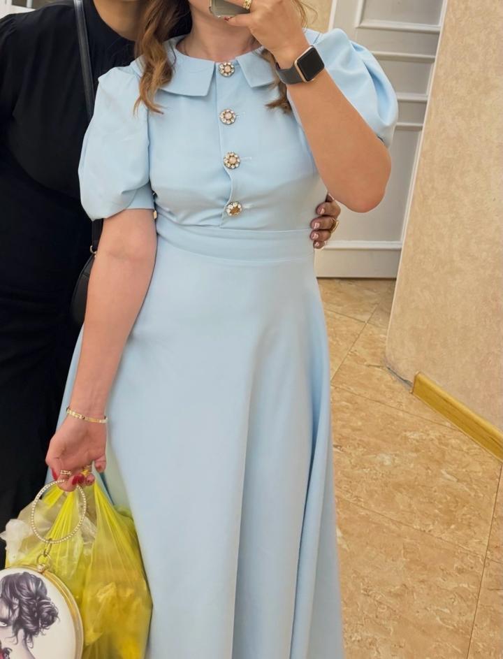 Голубое платье в хорошем состоянии, одна пуговица без камня Артикул: 558791