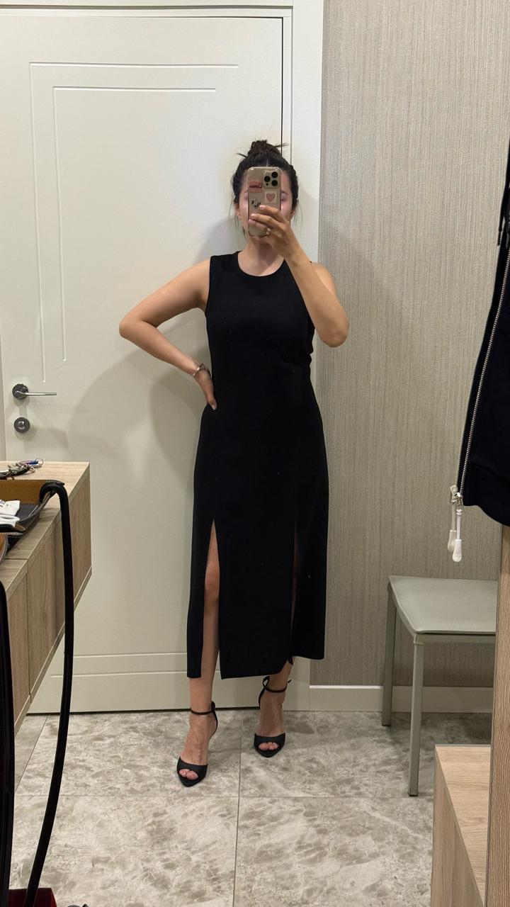Черное платье с разрезами спереди. Длина Миди. Артикул: 558799
