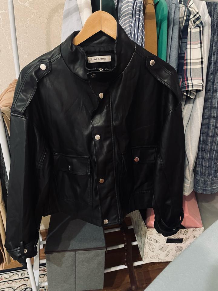 Не кожа! В хорошем состоянии, немного короченная черная куртка без утеплителя (тонкий подклад) Артикул: 558817