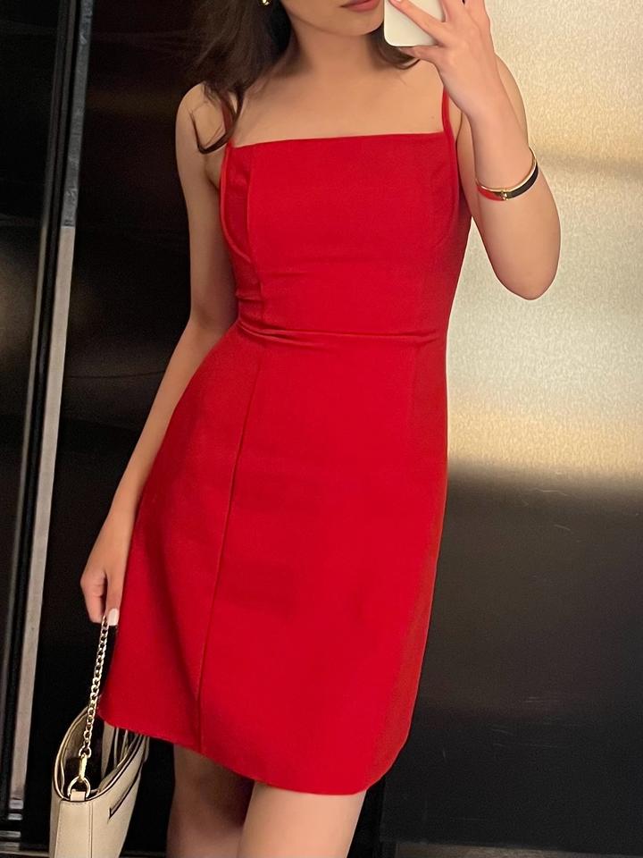 Красное платье мини Lichi, Минималистичное платье длины мини на тонких бретелях, дополненное рельефными вытачками для идеальной посадки по фигуре. длина мини приталенный силуэт тонкие бретели рельефные вытачки прямая юбка застежка на потайную молнию Артикул: 558853