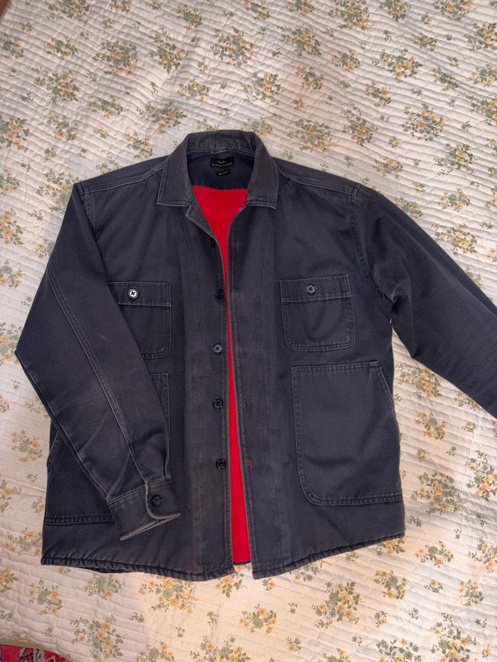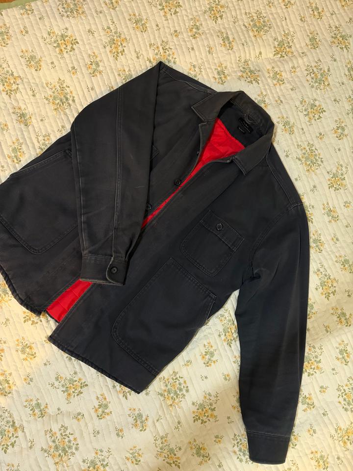 Тепленькая серая джинсовка с курточной тканью изнутри. Хорошо подойдет даже как верхняя одежда на весну. Состояние очень хорошее. Артикул: 558908