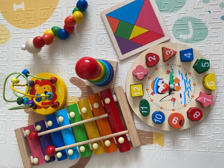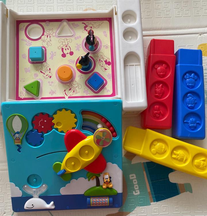 Развивающий набор из 6 игрушек интерактивная игрушка( работает) Набор рыбалка Развивающий стол( не хватает одной ножки) в комплекте 4 формы, микки маус, минни маус и самолетик Магнитная книжка: транспорт Артикул: 559039