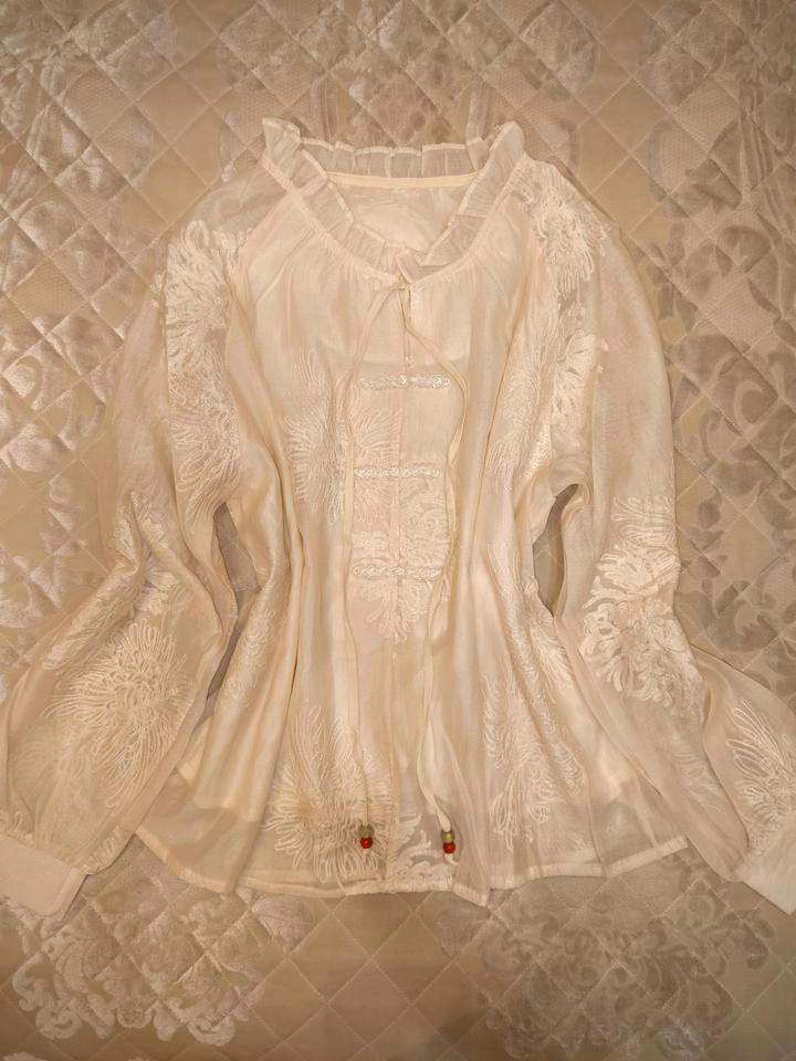 Нежная блуза в китайском стиле с вышивкой🤍S/M