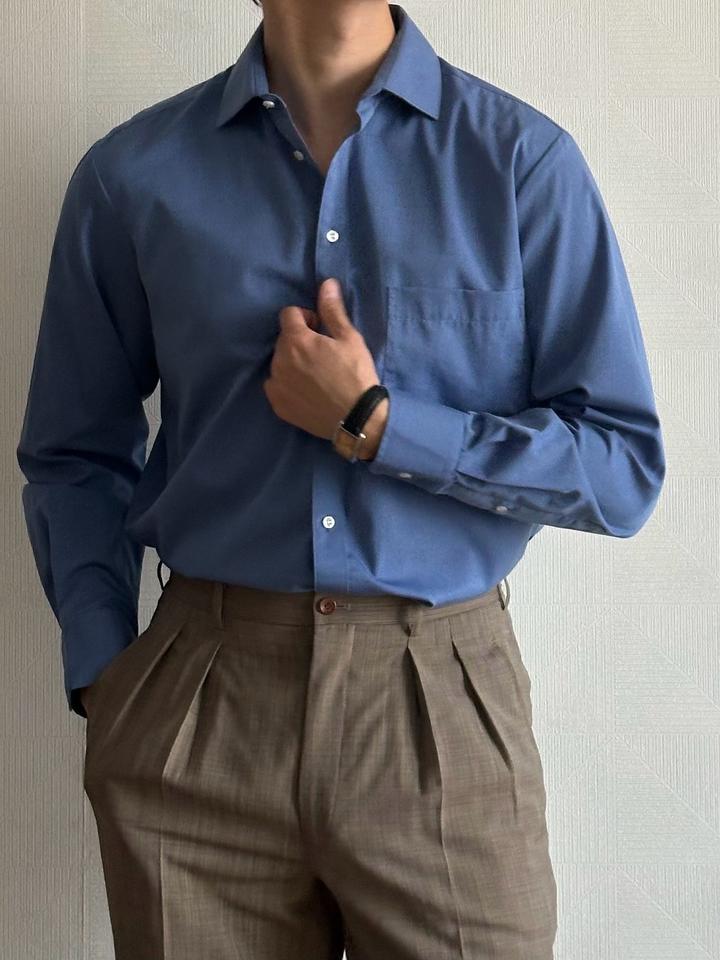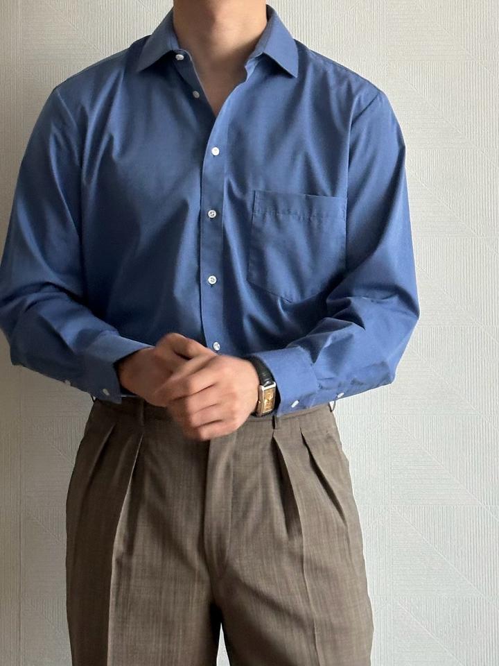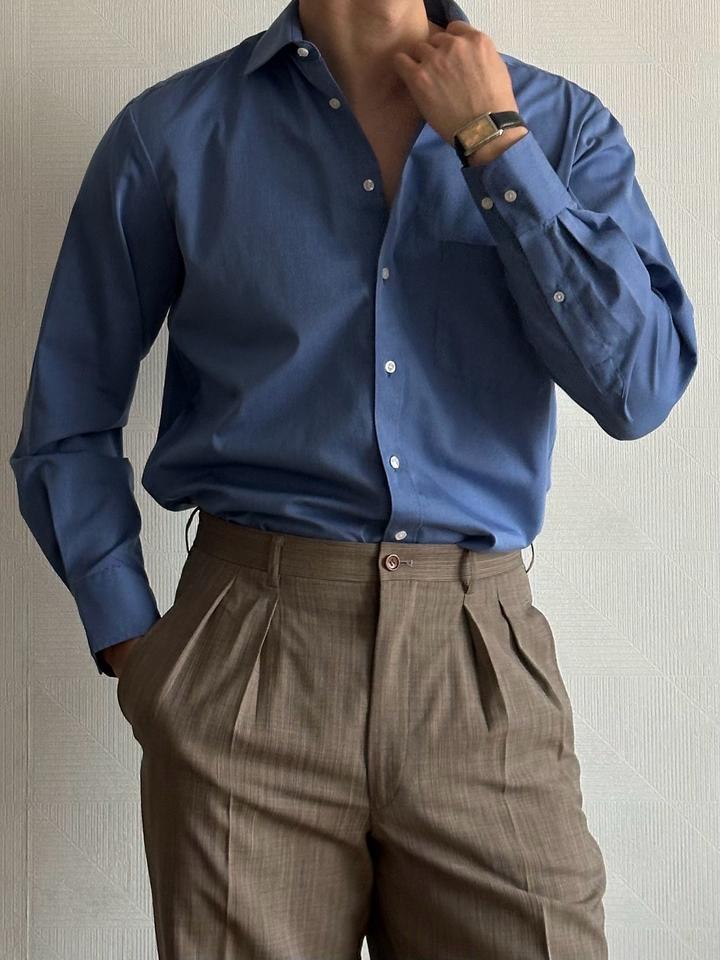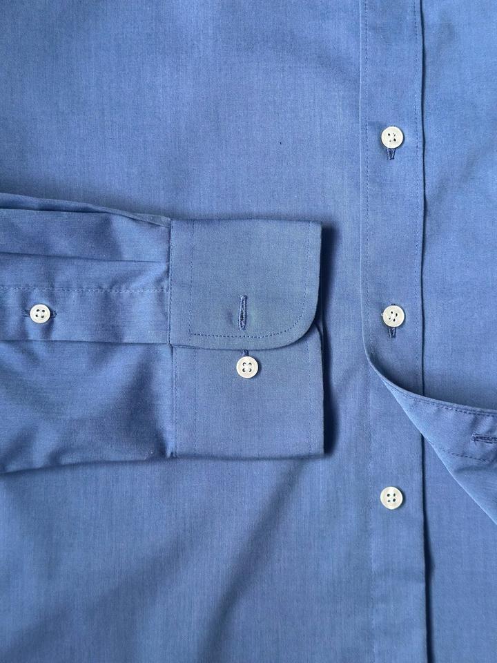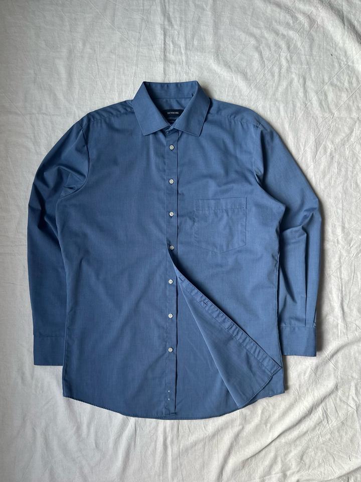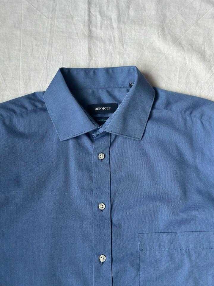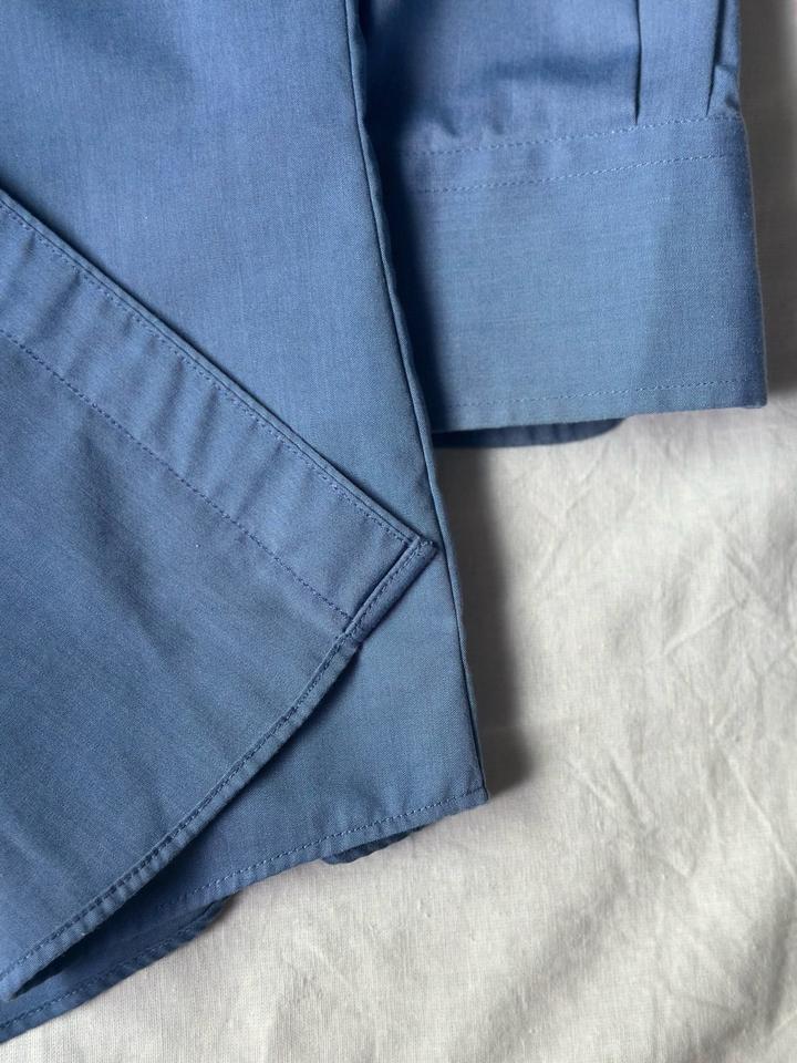 Dunmore | 40 (М) Классическая сорочка в глубоком синем оттенке. Приталенный крой, контрастные перламутровые пуговицы, манжеты с защипами. 100% хлопок Плечи 45 Грудь 58 Рукава 64 Длина 80 Made in Myanmar 🇲🇲 Состояние отличное, 10/10 Параметры модели: рост 183, размер М-Л Артикул: 559121
