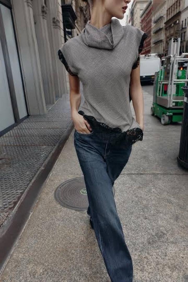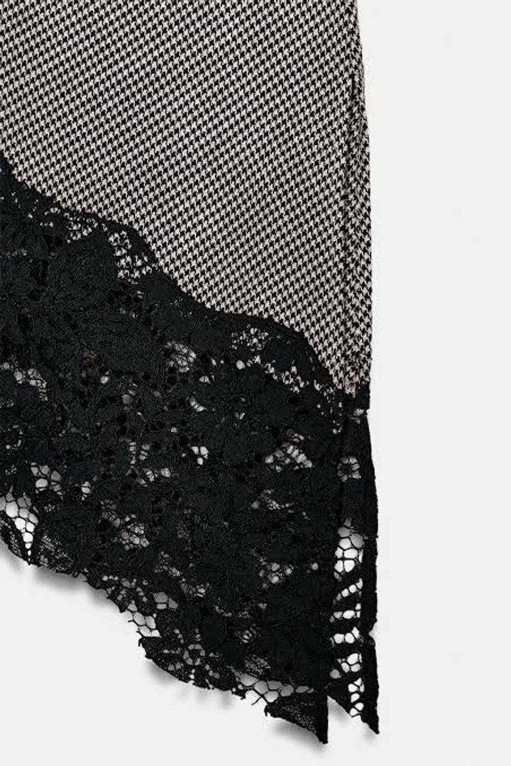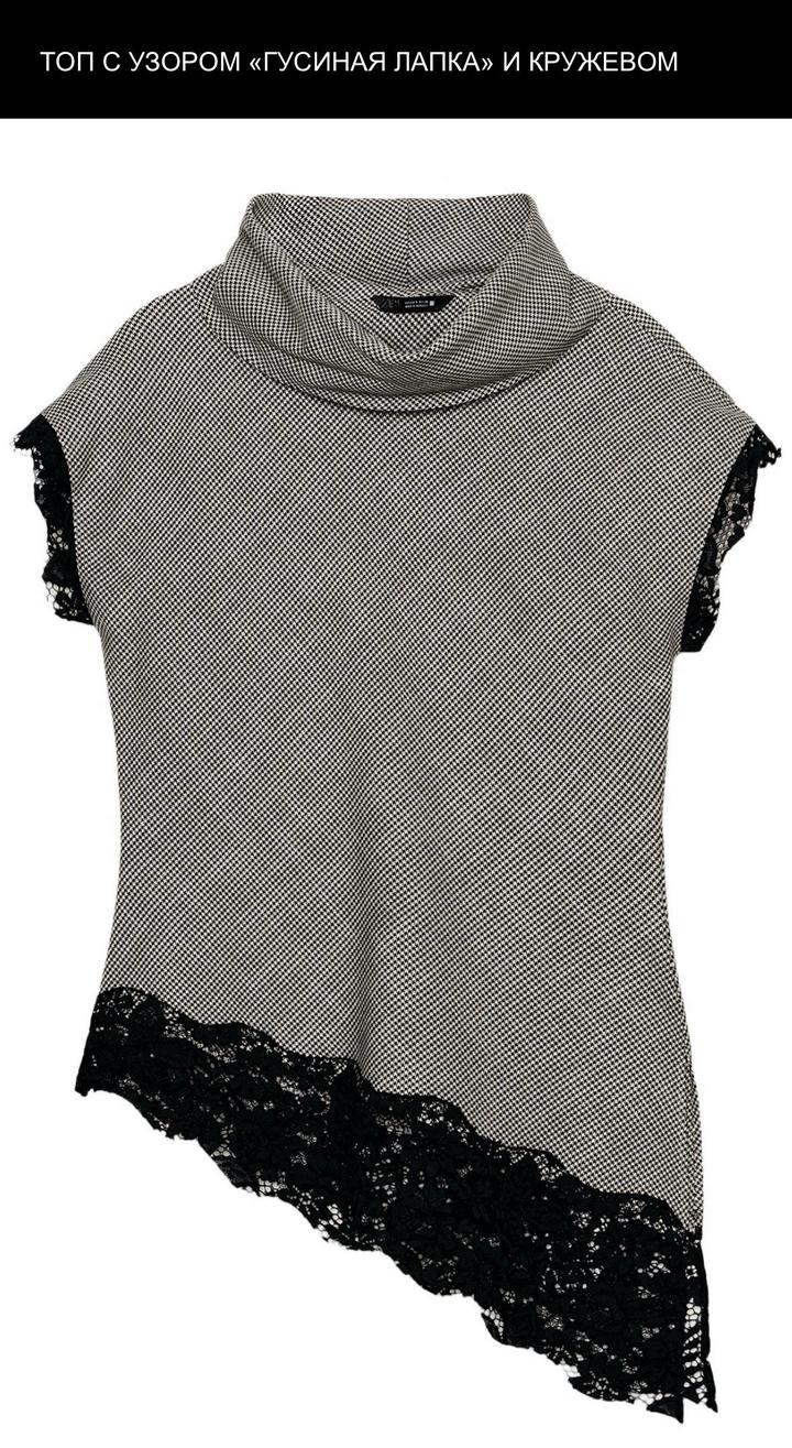 Топ в гусиную лапку с кружевом Размер на этикетке XL, но лучше сядет на M, L Артикул: 559166
