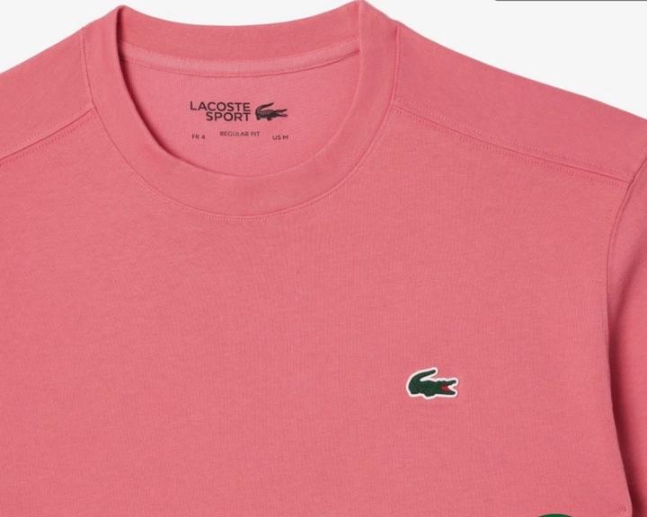 Футболка Материал: 100% хлопок Pima (известный своей мягкостью) Фасон: Классический крой (Regular Fit) с круглым вырезом горловины. Цвет: В официальных каталогах цвет может обозначаться как «розовый» (код PQU)футболка бренда Lacoste в розовом цвете. Классическая модель с коротким рукавом и узнаваемым логотипом Артикул: 559240
