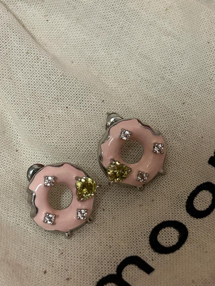 Серьги в виде пончиков 🍩✨ Очень нежные и оригинальные розовая эмаль с аккуратными камнями смотрится стильно и необычно. Состояние отличное, как новые. Лёгкие, удобные в носке, красиво переливаются на свету. Подойдут для создания милого и трендового образа 💕 Продаю, так как не ношу. Артикул: 559257