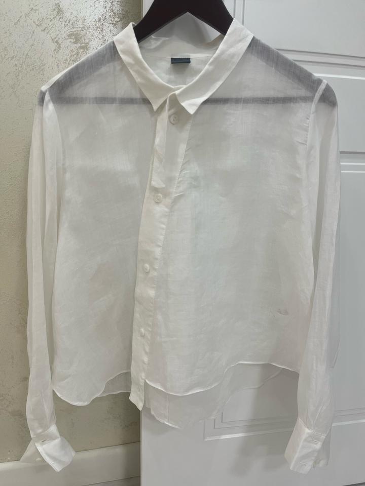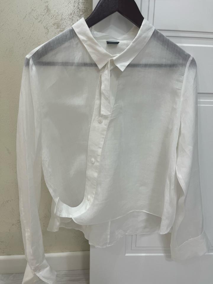 Изысканная блузка с дизайнерской не стандартной асимметрией, выполненная в лёгкой полупрозрачной ткани. идеальный вариант для тех, кто любит базу с изюминкой. Отлично подойдёт как для вечернего образа, так и для стильного повседневного выхода. Один выход. Новая без нюансов . Артикул: 559376