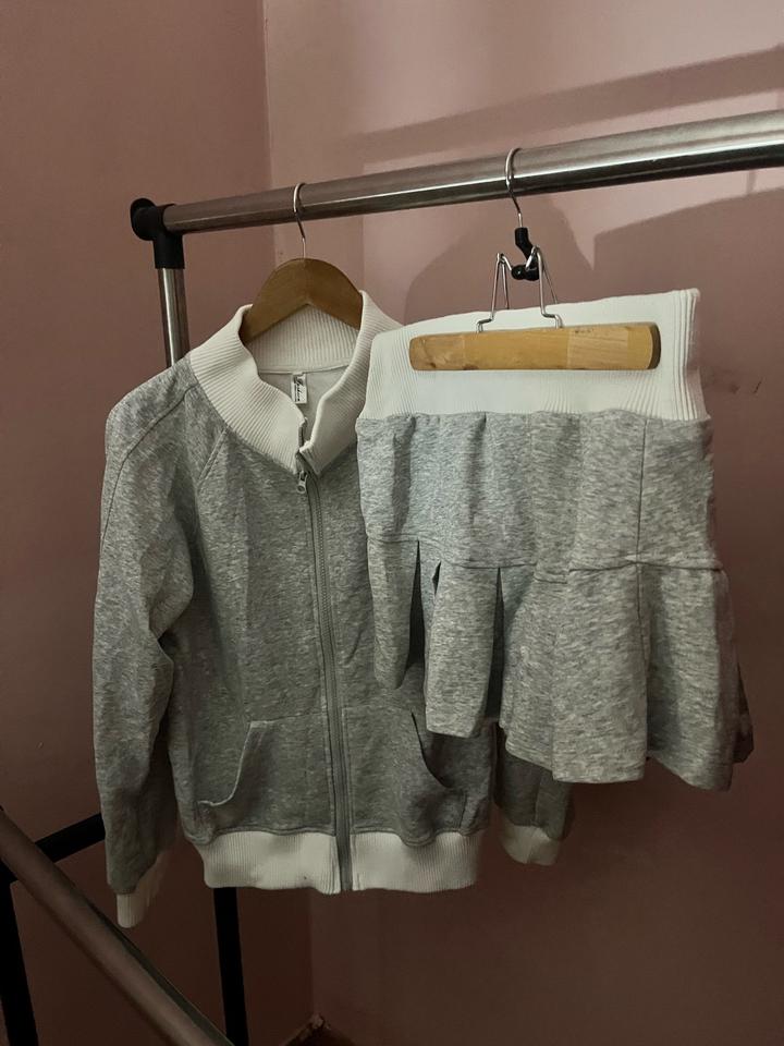 Двойка с мини юбкой с шортами под низом И толстовка на замке, Аккуратный Корейский вайб Артикул: 559460