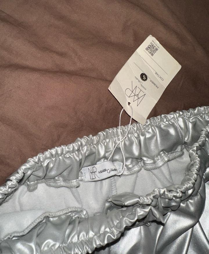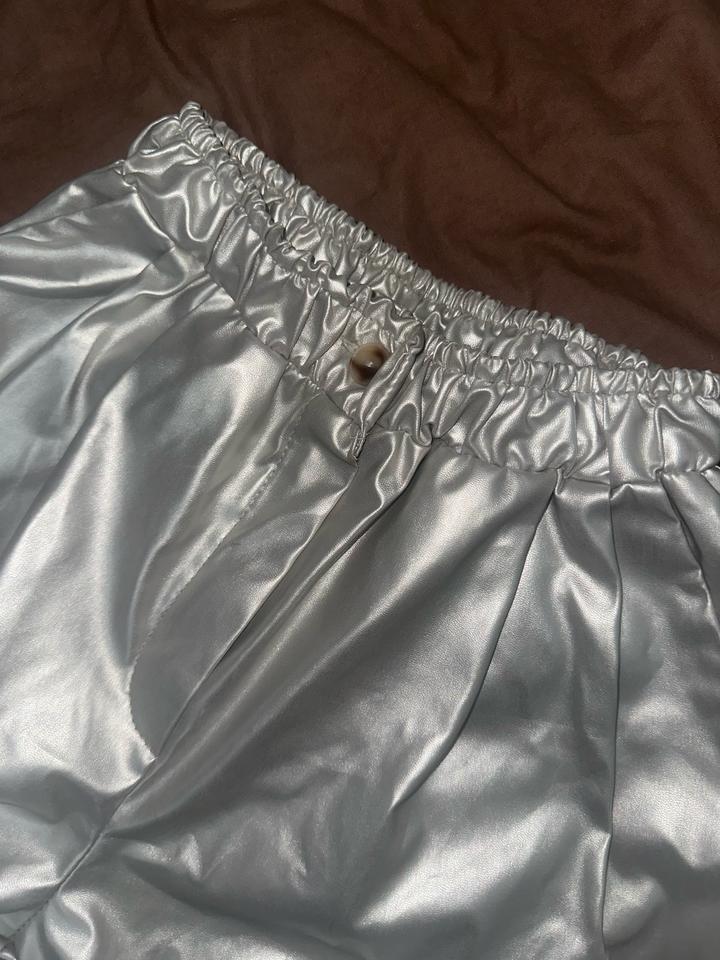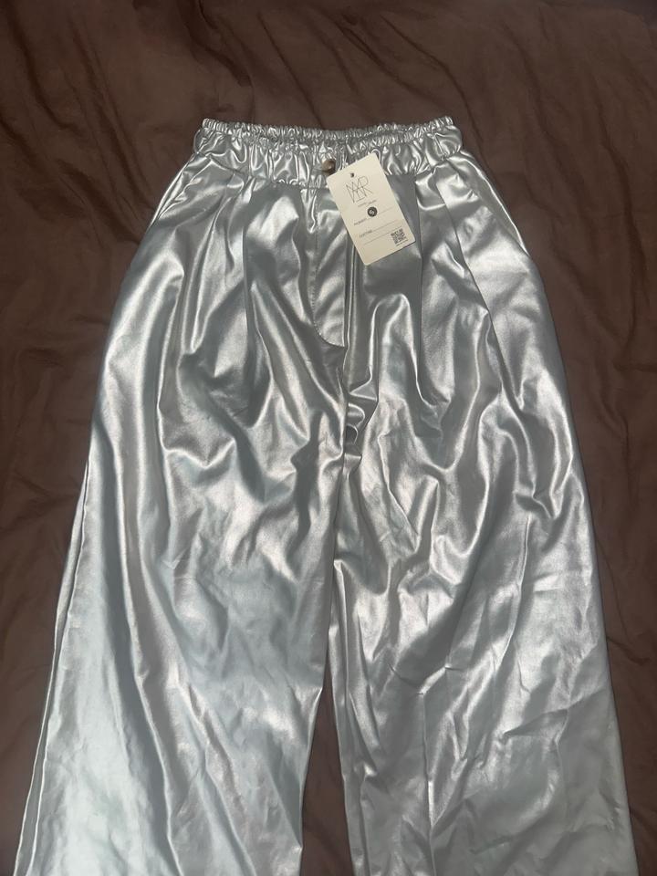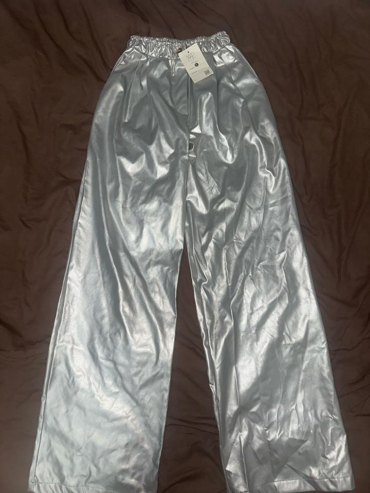 Новые серебристые брюки с этикеткой. Размер S. Материал под кожу, но лёгкий и комфортный. Артикул: 559463